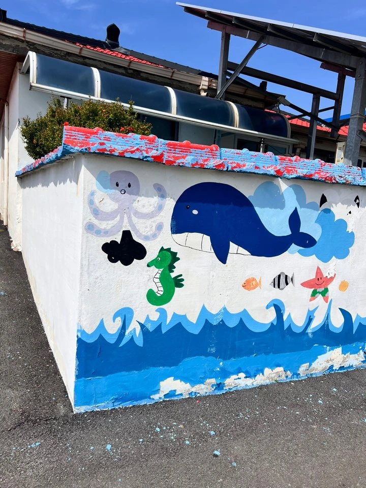 바다가 보이는 길도, 귀여운 고래와 문어가 그려진 벽화도 좋다.