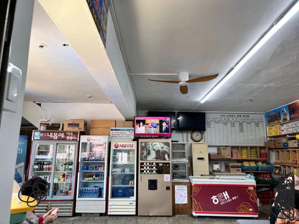 평소 바나나 우유를 좋아하지 않는데도, 왠지 이 터미널에서 바나나 우유를 사 먹고 싶다는 느낌이 드는 신기한 감정을 느꼈다. 오랜만에 뭔가 껌 같은 것을 사 먹어야 할 것 같은 느낌도 들었다.