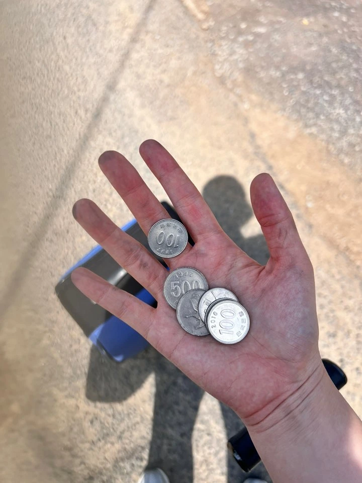 돈 날렸다 생각한 그 순간. 기사님은 기계를 몇 번 탕탕 누르시더니 "돈 가져가요." 했다. 난 연신 감사 인사를 날리며 1400원을 수거해 왔다.
