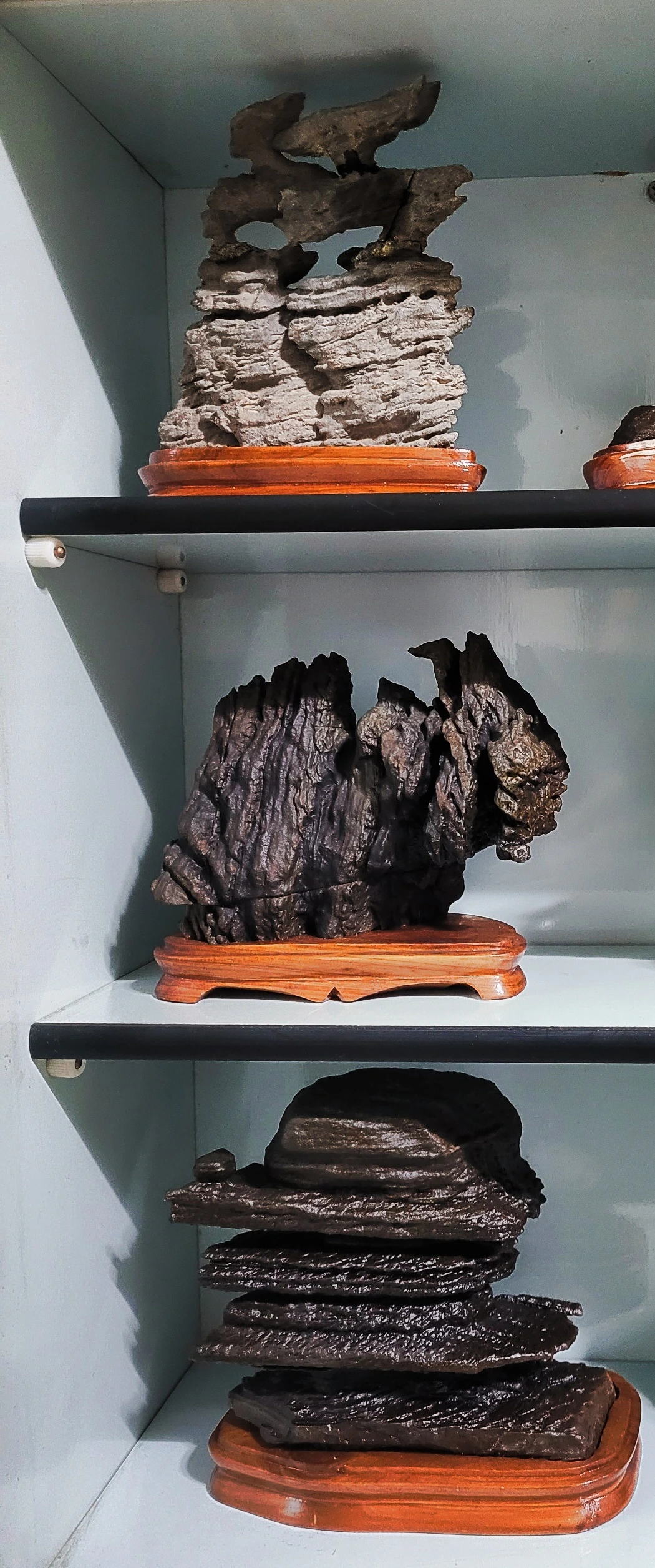 수석과 기목에 관심을 가졌던 외삼촌께서는 수많은 수석을 수집하여 거래를 하셨는데 그런 와중에 처남이 먼저 돌아올 수 없는 먼길을 떠나자 젊은 날 수집하여 아끼고 고이 간직했던 수석들을 장식장에 예쁘게 담아 여동생 집에 놓고 가셨습니다.