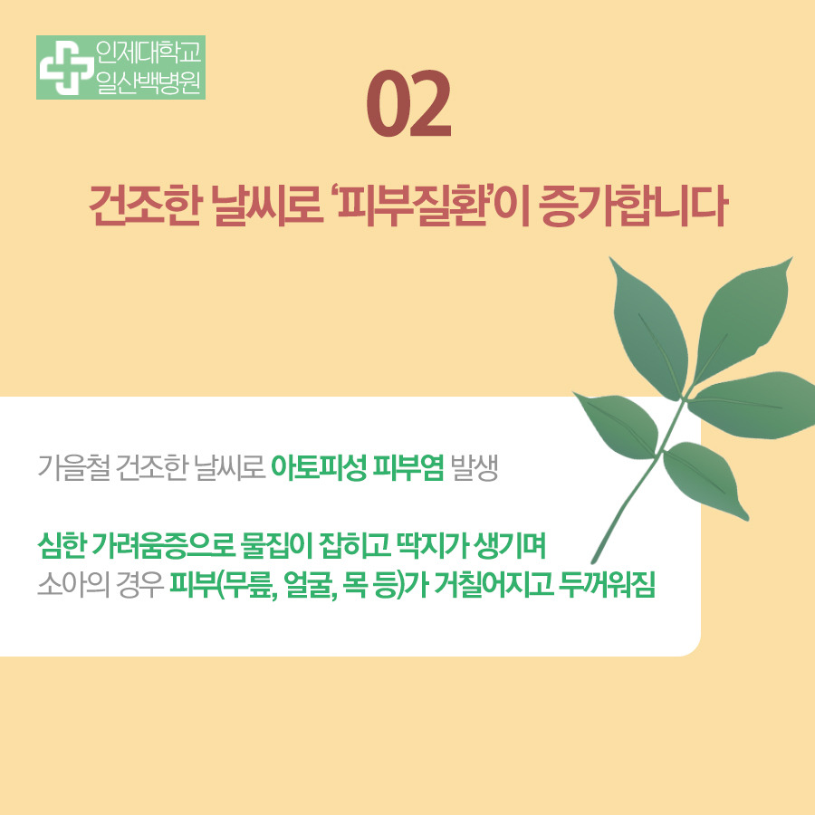 둘째, 건조한 날씨로 인해 '피부질환'이 증가합니다.