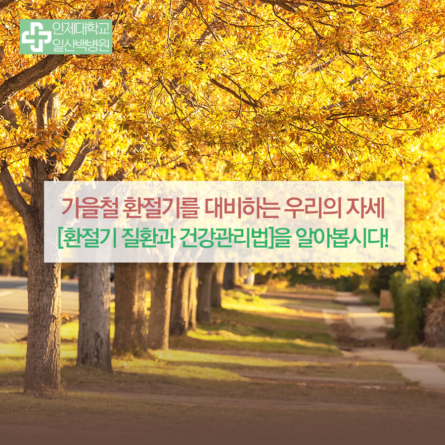 무더운 여름이 지나고 야외 활동하기 좋은 선선한 가을이 다가왔습니다. 하지만 아침과 저녁에는 매우 쌀쌀한데요, 이렇게 일교차가 심하게 나타나면 외부로부터 몸을 방어하는 '면역력'이 쉽게 떨어져 우리의 몸이 각종 환절기 질환에 걸리기 쉬운 상태가 됩니다. 그렇다면 가을철 환절기에 쉽게 발생할 수 있는 질환은 무엇이 있고, 어떻게 하면 환절기 질환을 예방할 수 있을까요?