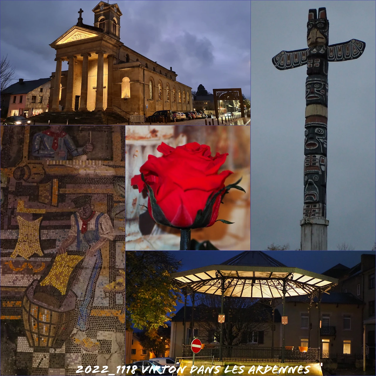 A cause de la pluie et de l'heure tardive, nous avons abandonné la visite de Marville et sommes rentrés à Virton où un totem Canadien nous a accueilli. Après une visite rapide de la ville, nous sommes rentrés à l'hôtel à Sainte-Cécile pour fêter l'anniversaire de Hilde.