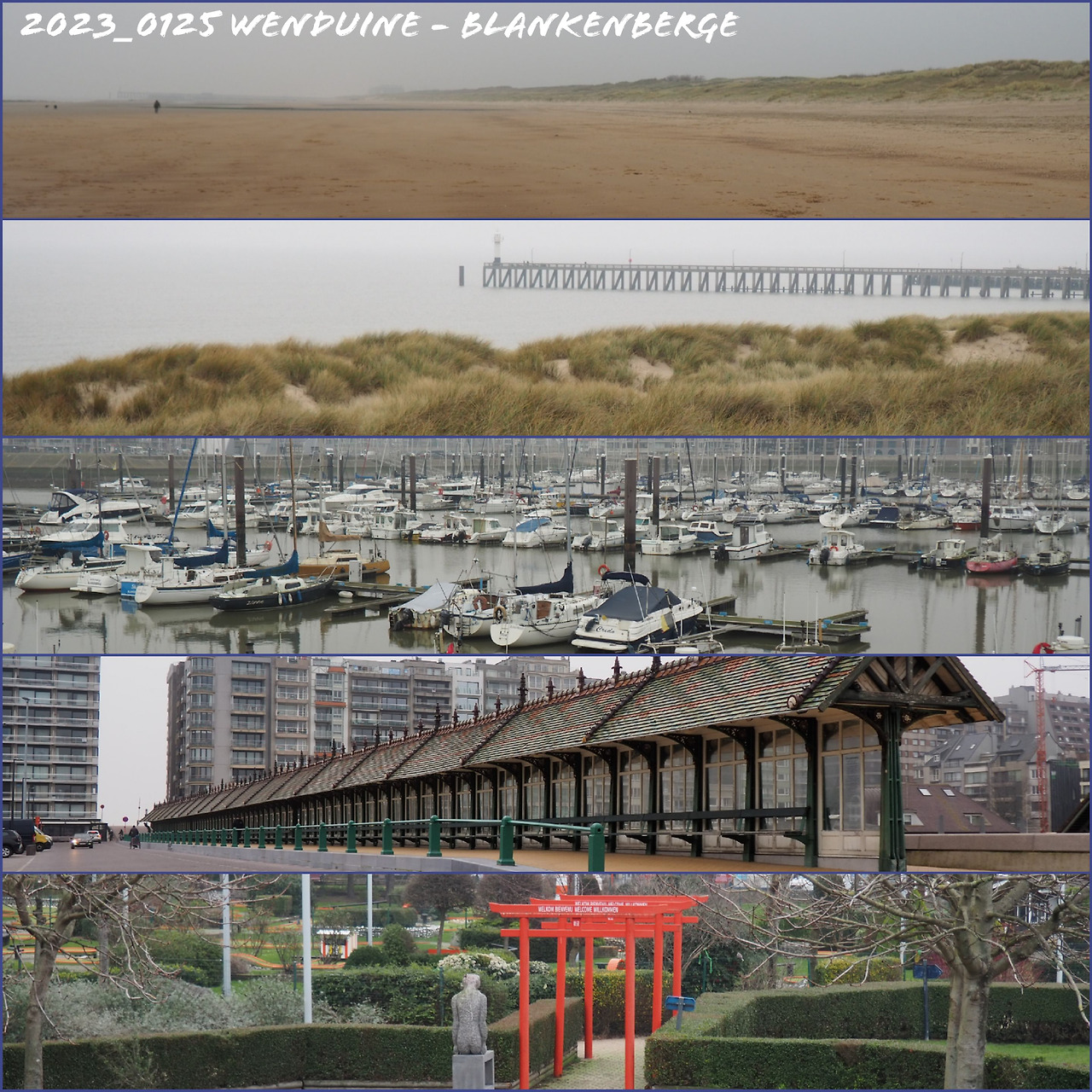 Le ciel était plus gris qu'hier, ou était-il plutôt plus blanc ? Nous avons garé la voiture à Wenduine et marché vers Blankenberge pour aller jusqu'à Zeebrugge.