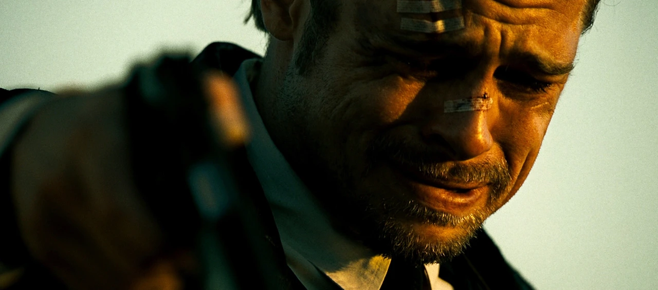그러나 단 한번. 그의 멈추지 않을 것만 같던 총격이 존 도의 생명을 단 1분 남겨두고 멈추었을 때. 밀스는 이 기회가 넘어가면 자신이 두 번 다시는 돌아오지 못할 것이란 걸 느꼈을 것이다. 그는 여태껏 유지해 온 자신의 형사 생활을 걸고 끝까지 저항했지만. 결국 선택한 것은 살인이었다. 이미 죽은 존 도의 시체 위에 총알을 박아 넣는 밀스를 보고 있자면, 처절하다는 말 외에는 건넬 수 있는 위로가 없는 것처럼 느껴진다. 그의 울고 있는 얼굴이, 들썩이는 어깨가. 이런 순간을 위해 총알을 아낀 것이 아님을 말하는 듯, 스스로를 향한 처량한 항변을 늘어놓고 있는 것만 같아서.