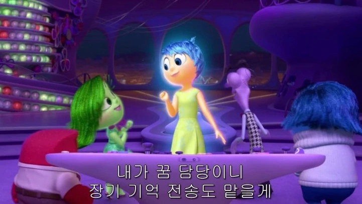 정신 차려. 어제 잠을 안 잤는데 무슨 장기기억이야. 그리고. 힘든 게 문제야? 슬픔이 저게 자꾸 힘들다고 울고만 있지, 소심이 쟤는 손톱만 물어뜯고 있지. 이러니 내가 짜증이 안 나겠어?? 아니 독서클럽은 왜 만들어서 맨날 저 난리인 거야 쟤는.