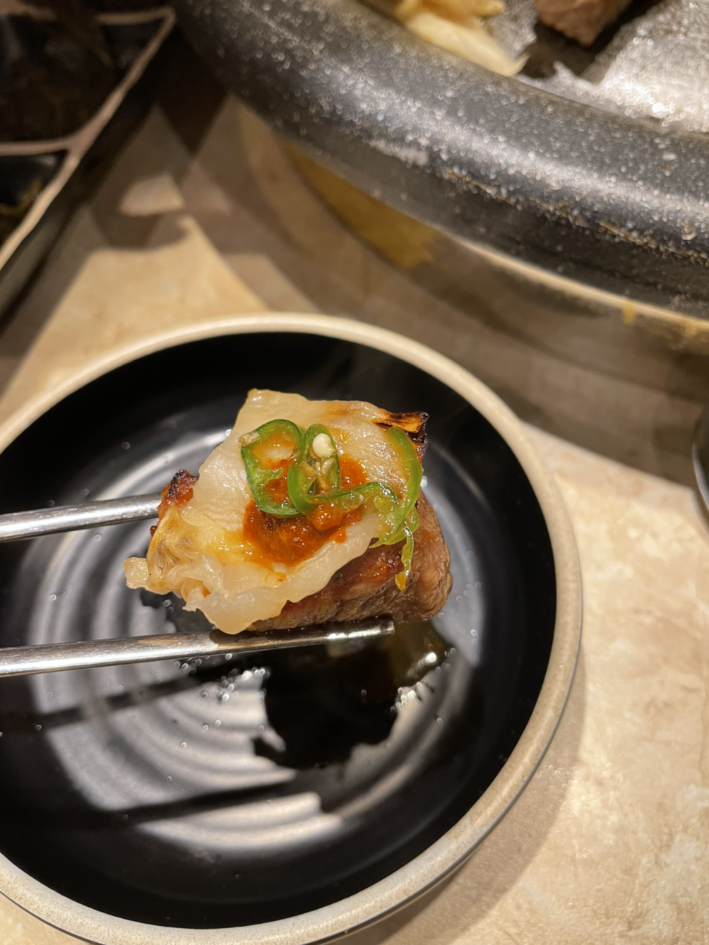 제일 인상깊었던 메뉴는 삼겹살인데 숙성때문인지 품종의 특성때문인지 고소한 버터향이 감돌았고