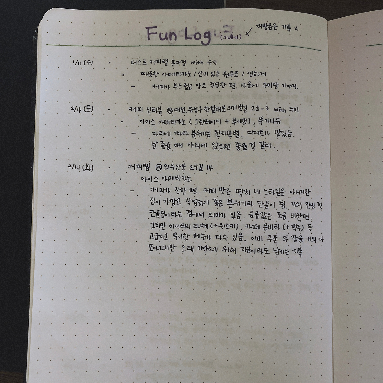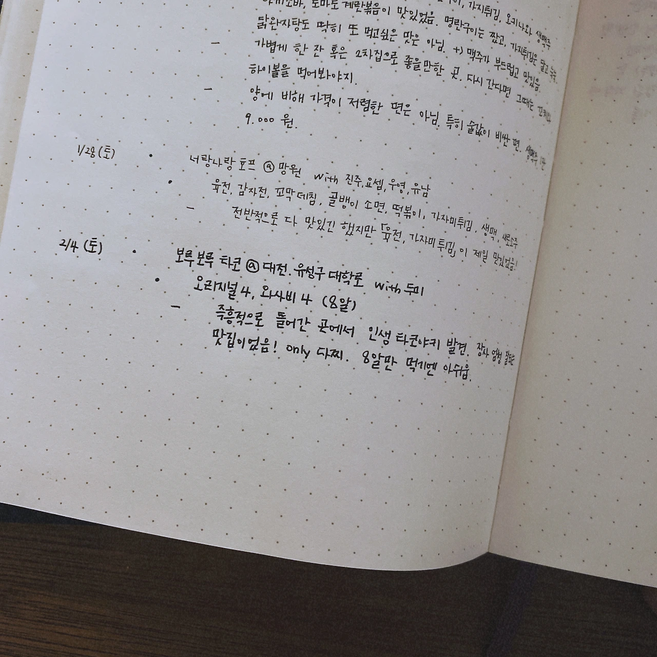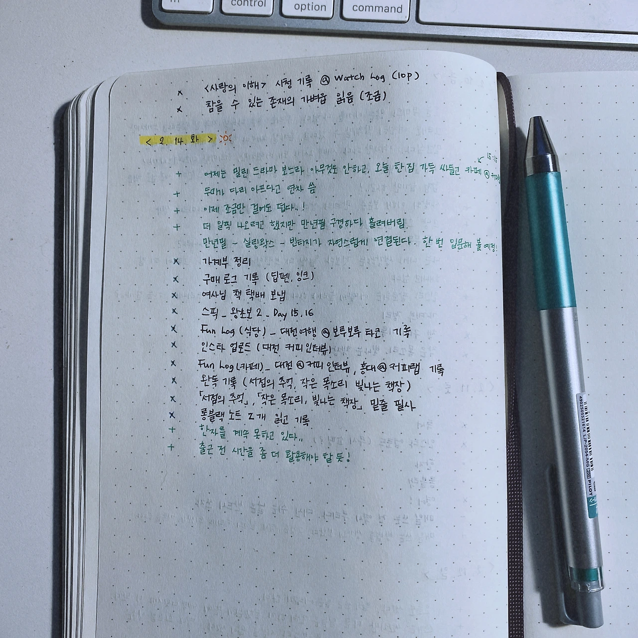 인스타 보면 불렛저널을 엄청 멋들어지게 활용하는 분들이 많던데, 나는 다꾸 같은 것에 재주도 없을뿐더러 검은색 볼펜으로 글자만 쓰는 것조차 매일 밀린 일기 쓰듯 버겁게 쓰기 때문에 꾸미기는 사치이다. 그래도 기록은 좀 더 일찍부터 했으면 좋았을 걸 생각한다. 기록의 중요성을 매일 느끼는 요즘이다.