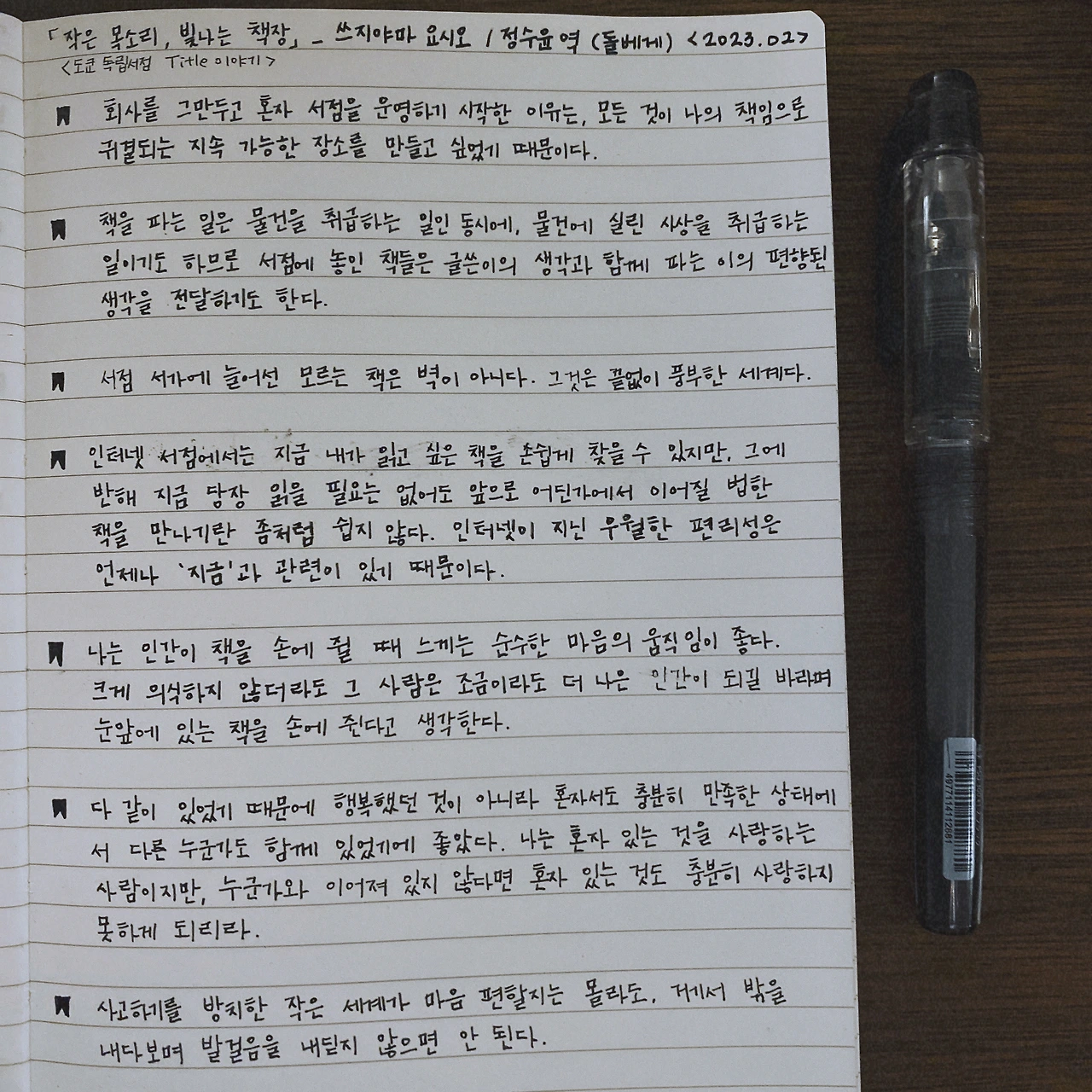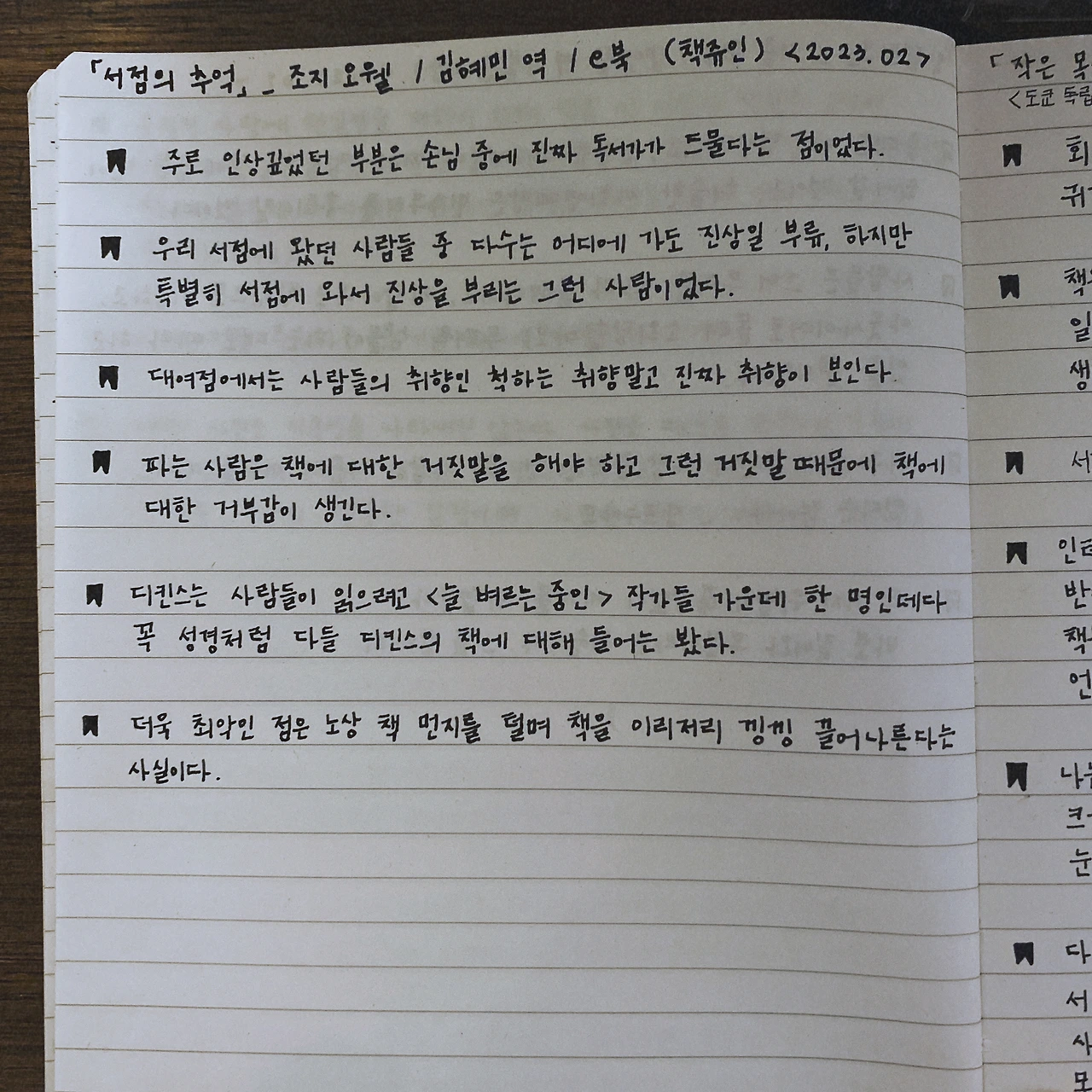 인간은 망각의 노예이다. 열심히 책을 읽어도 돌아서면 잊는다. 올해부터는 좀 더 착실히 기록을 해 보고자 불렛저널에 완독 컬렉션을 개설했다. 올해 네 번째 책을 완독 했다. <서점의 추억>은 책이라기엔 너무 짧으니 세 권이라고 해도 할 말은 없다.