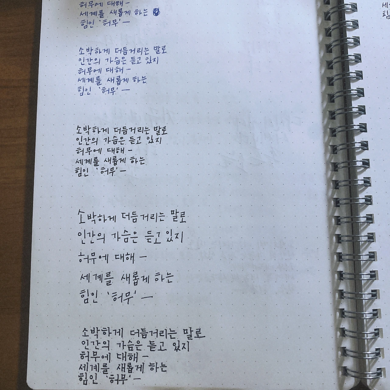 책을 보고 연습하는 캘리그래피보다 기본적인 글씨 쓰기가 더 어렵다. 글씨도 정말 연습하면 잘 쓸 수 있을까? 점점 자신이 없어진다. 오늘은 에밀리 디킨슨의 '소박하게 더듬거리는 말로'를 필사했다. 이쯤 되면 필사라기보다는 그냥 글씨 연습이지만.