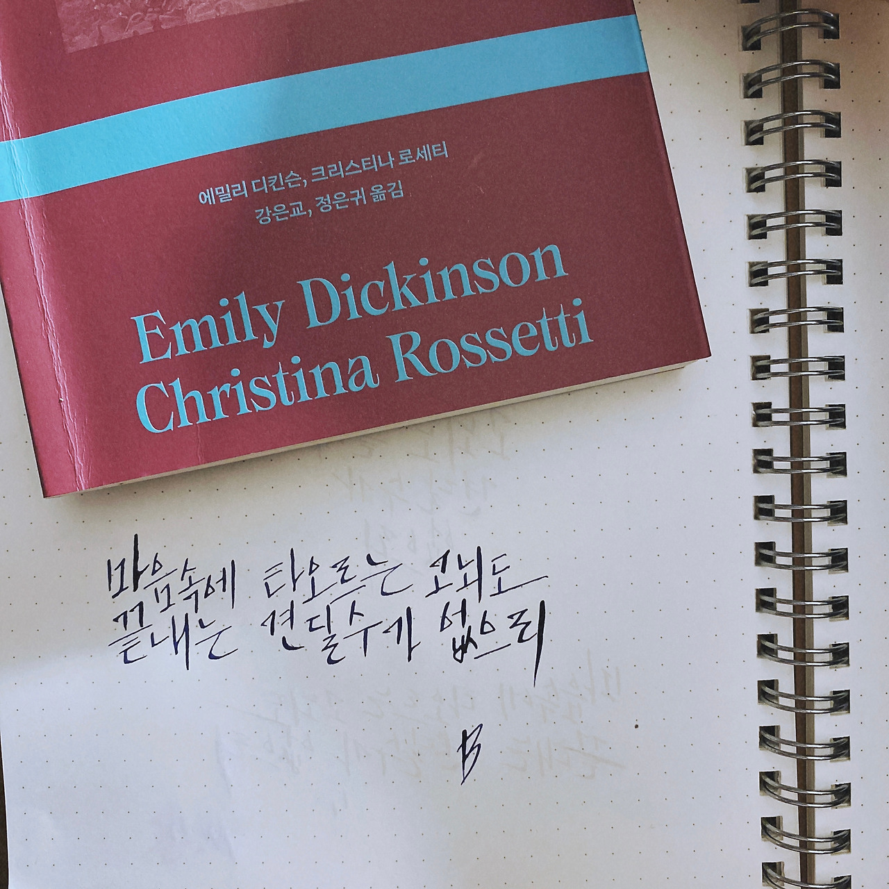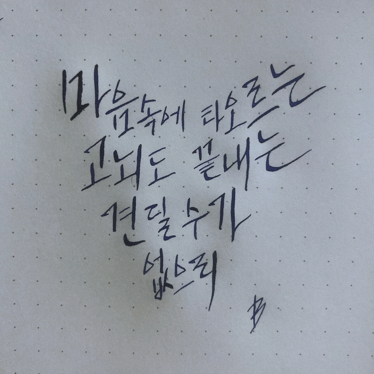 오늘은 시 전문을 필사했고, 그중에서 마음에 드는 문장을 뽑아 캘리그래피 형식으로 써 보았다.