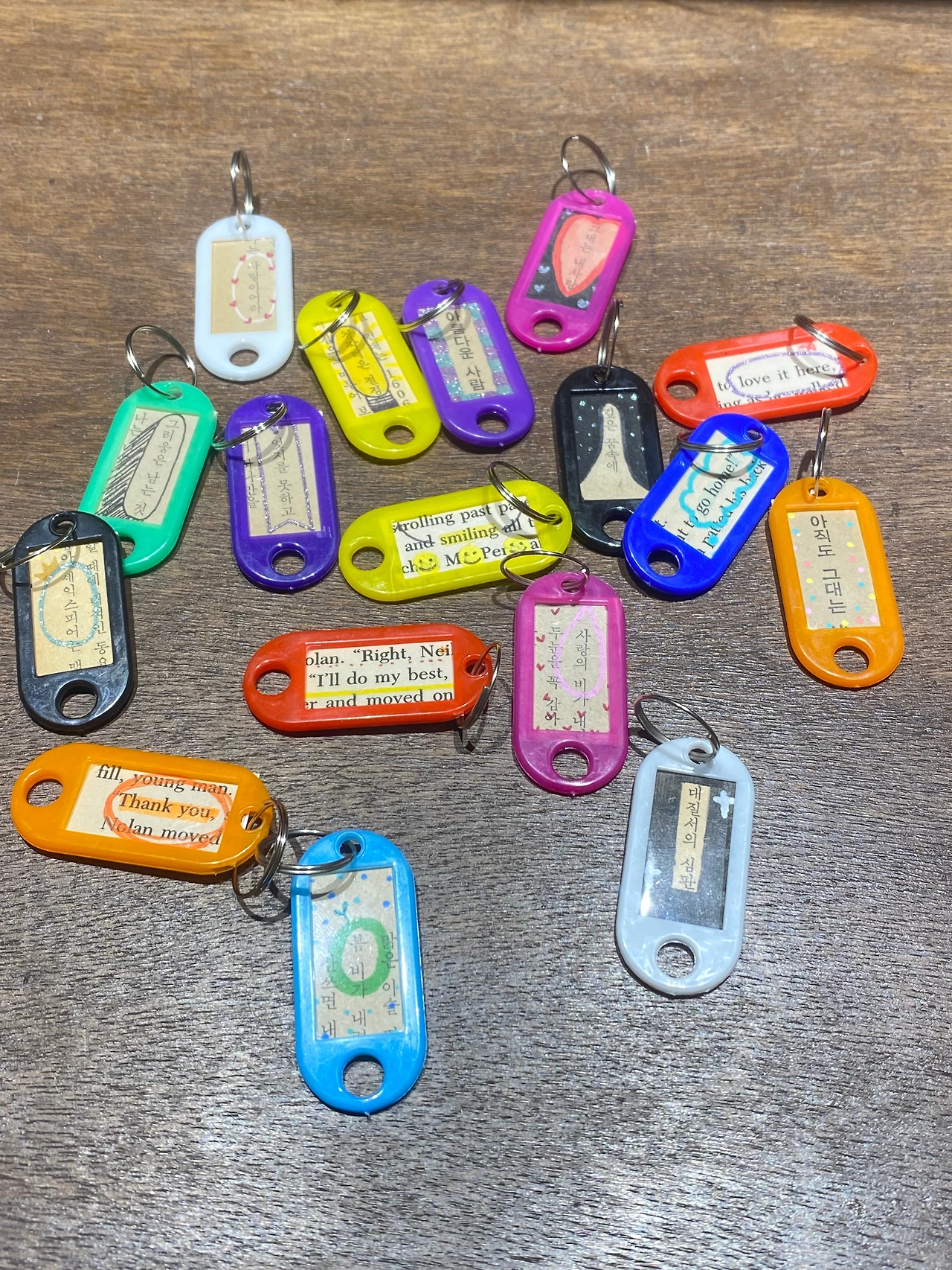 쓰고 보니 별거 없네 ^^ 문장 키링 제작이 시간을 많이 잡아먹습니다. 이번 수집도 제 마음엔 드는데 고객님들 눈에는 어떨지 이제 지켜봐야겠죠?!라고 쓰는 와중에 스토리 올린 거 보시고 네 개나 택배 주문해 주신 고객님 등장! (미쳐따 미쳐따~~)