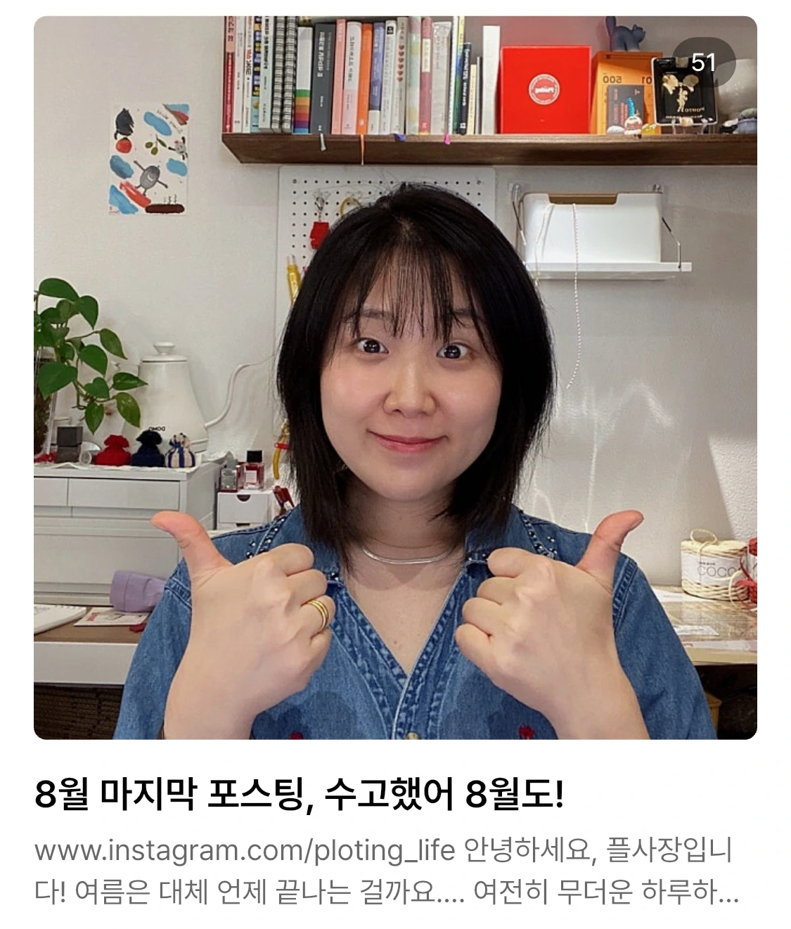 다시 오늘의 일기로 돌아와서, 8월은 그동안 시도해 보지 않았던 많은 일들을 시도한 달이기도 하다. '이야기 장수'콘셉트의 릴스 아이디어가 떠올랐다고 일기에도 적은 적이 있는 바로 그 아이디어를 8월엔 실천에 옮겼고, 오래 미루던 라이브에 도전했으며, 월 4회 휴무라는 개인적으로는 꽤나 파격적인 시도도 해 보았다.