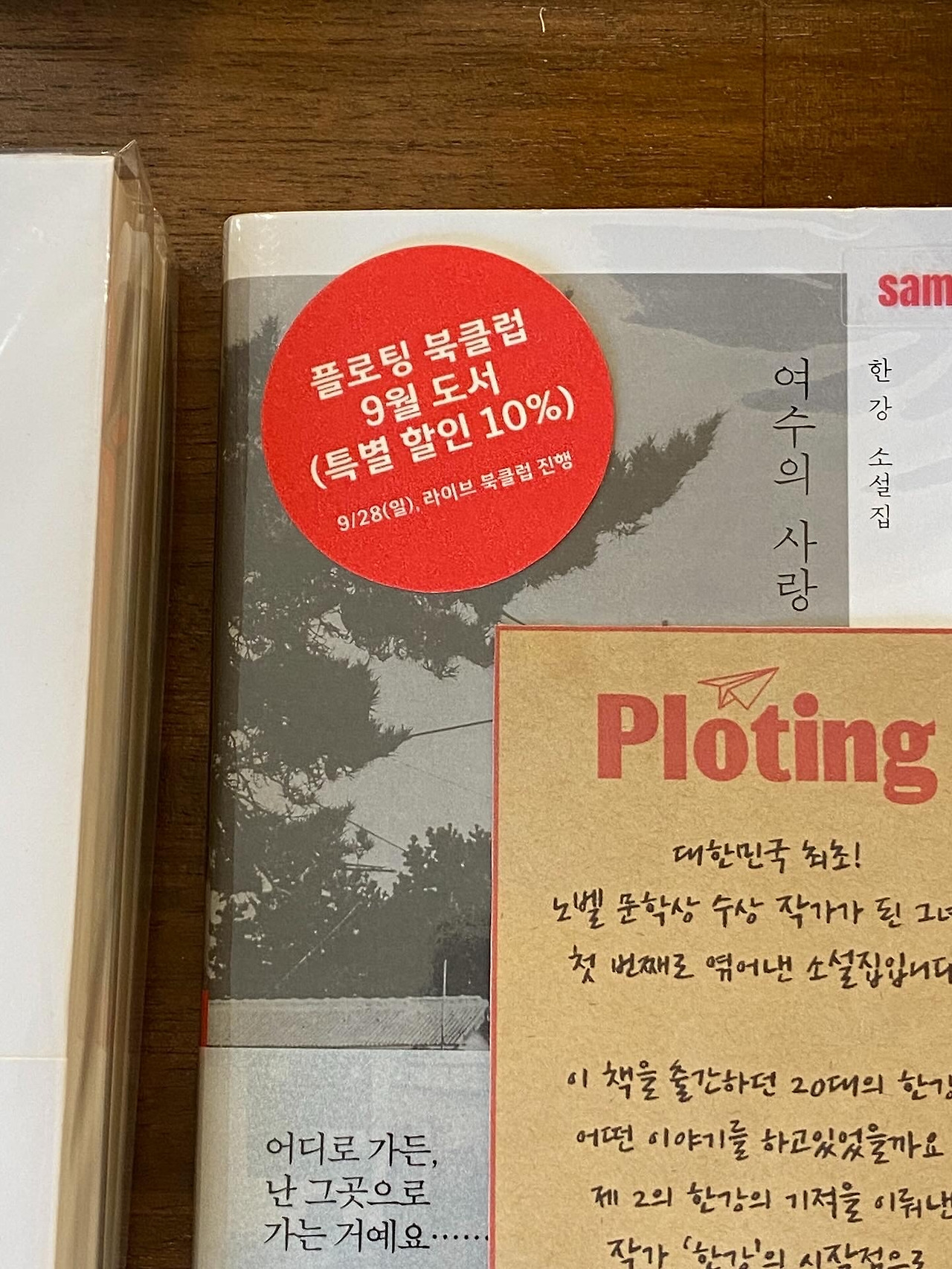 9월의 새 시도로 플로팅 북클럽 공지를 올렸다. 전부터 하고 싶었던 일이었는데, 라이브를 시작하며 은근슬쩍 용기를 내 보았다. 이건 비밀인데, 북클럽 도서는 판매 부진 도서들이 주로 선정될 예정^^ 그래서 첫 북클럽 도서는 한강의 첫 소설집인 <여수의 사랑>이다. 북클럽 도서는 한 달간 매장에서도 10% 할인가에 구매할 수 있다. 라이브 2회 차에 약간 의기소침한 상태가 돼버리긴 했지만, 그래도 책 수다는 굉장히 즐거울 것 같다.