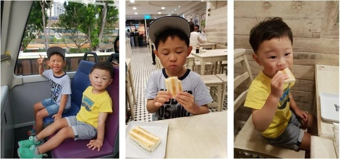 "안 돼. 너무 멀리 가면 못 돌아가."라며 아이들을 달랬습니다. 쇼핑몰에 들어가 먹은 카야 토스트가 아주 꿀맛이었습니다.