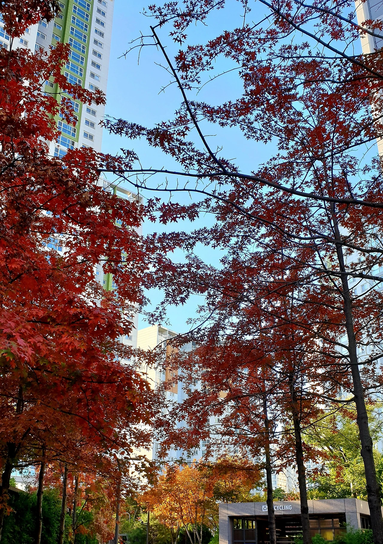 보는 각도에 따라 다르겠지만, 우리 집 창문에서 보면 빨간 단풍잎