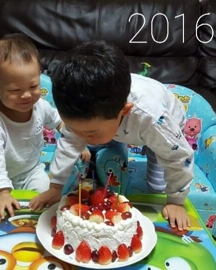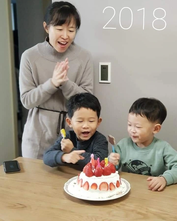 어찌 됐든 크리스마스마다 케이크를 만드는 것은 우리 가족 크리스마스 전통이 되었다. 케이크와 아이들을 찍은 사진을 보는 재미도 쏠쏠하다. 사실 매년 케이크를 만들 때마다 남편이 힘들어 보이지만 나는 이때다 싶어 애들을 남편한테 맡겨놓고 잠시 자유 시간을 보낸다.