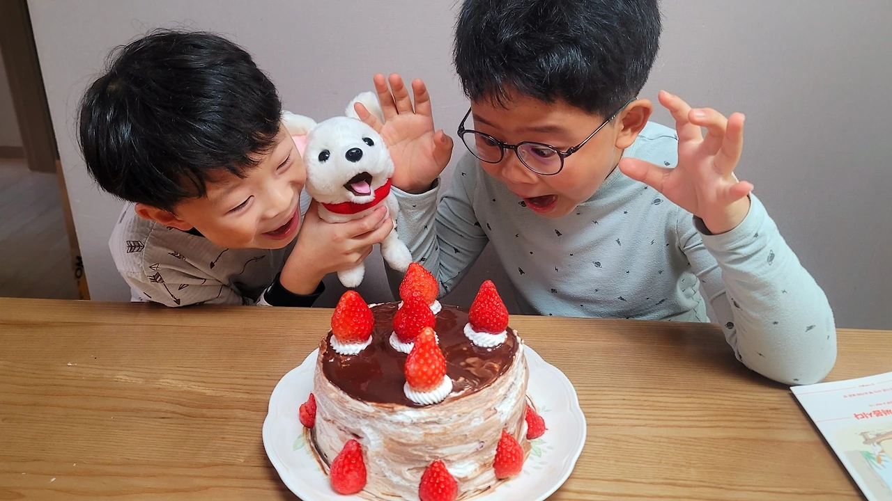 남편과 아이들은 생크림에 설탕을 넣고 반죽기로 돌렸다. 나는 또다시 방에 들어가 아이들의 "맛있겠다. 생크림 먹어도 돼요?" 하는 소리를 들으며 드라마를 보다가 "애들 사진이라도 찍어 주지?"라는 남편의 타박에 황급히 나와 아이들 사진을 찍어 주었다.