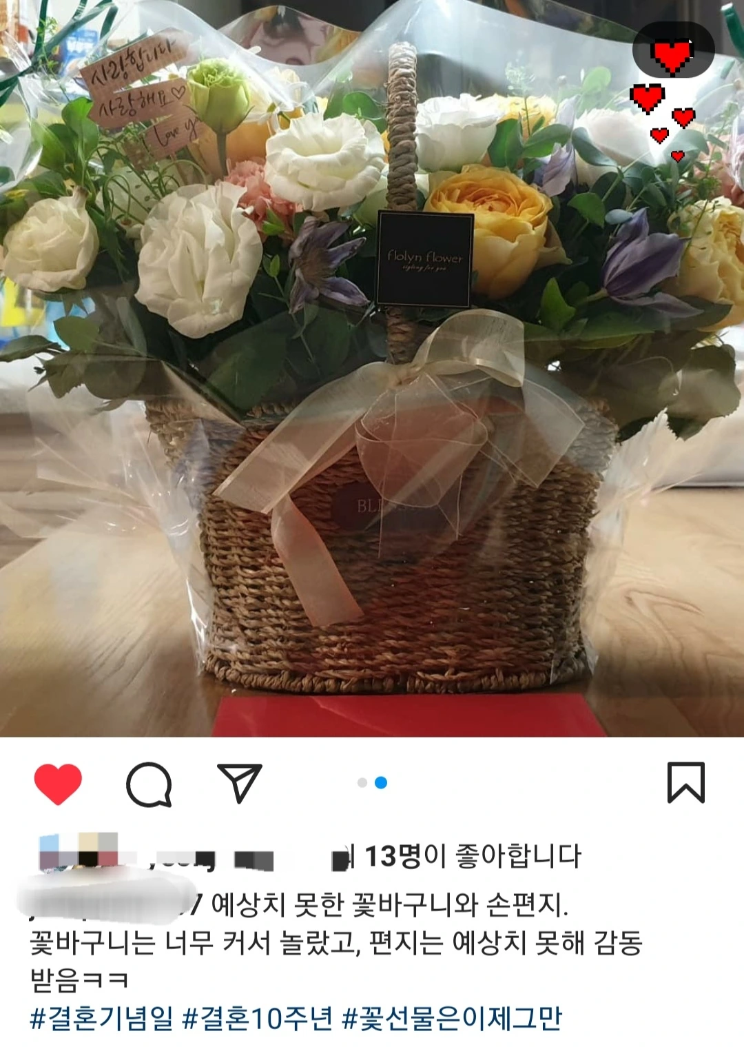 결혼 10주년에 남편은 꽃바구니를 선물했다. 꽃다발도 아닌 꽃바구니라니!