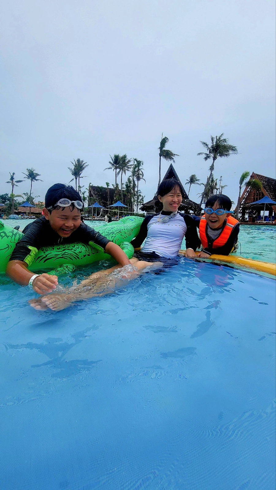 출발 이틀 전에 쿠팡에서 부랴부랴 주문한 악어 튜브도 잘 가지고 놀았다. 아이들은 악어에게 '악돌이'라는 이름을 붙여 주었다. 악어 튜브에 올라타기가 어려운 점에 착안한 남편은 '악돌이 면허 시험'을 만들었다. 아이들은 '악돌이 면허 시험'에 여러 번 도전하여 초급, 중급, 고급, 마스터급, 전문가급, 신급 등의 자격을 취득하였다.