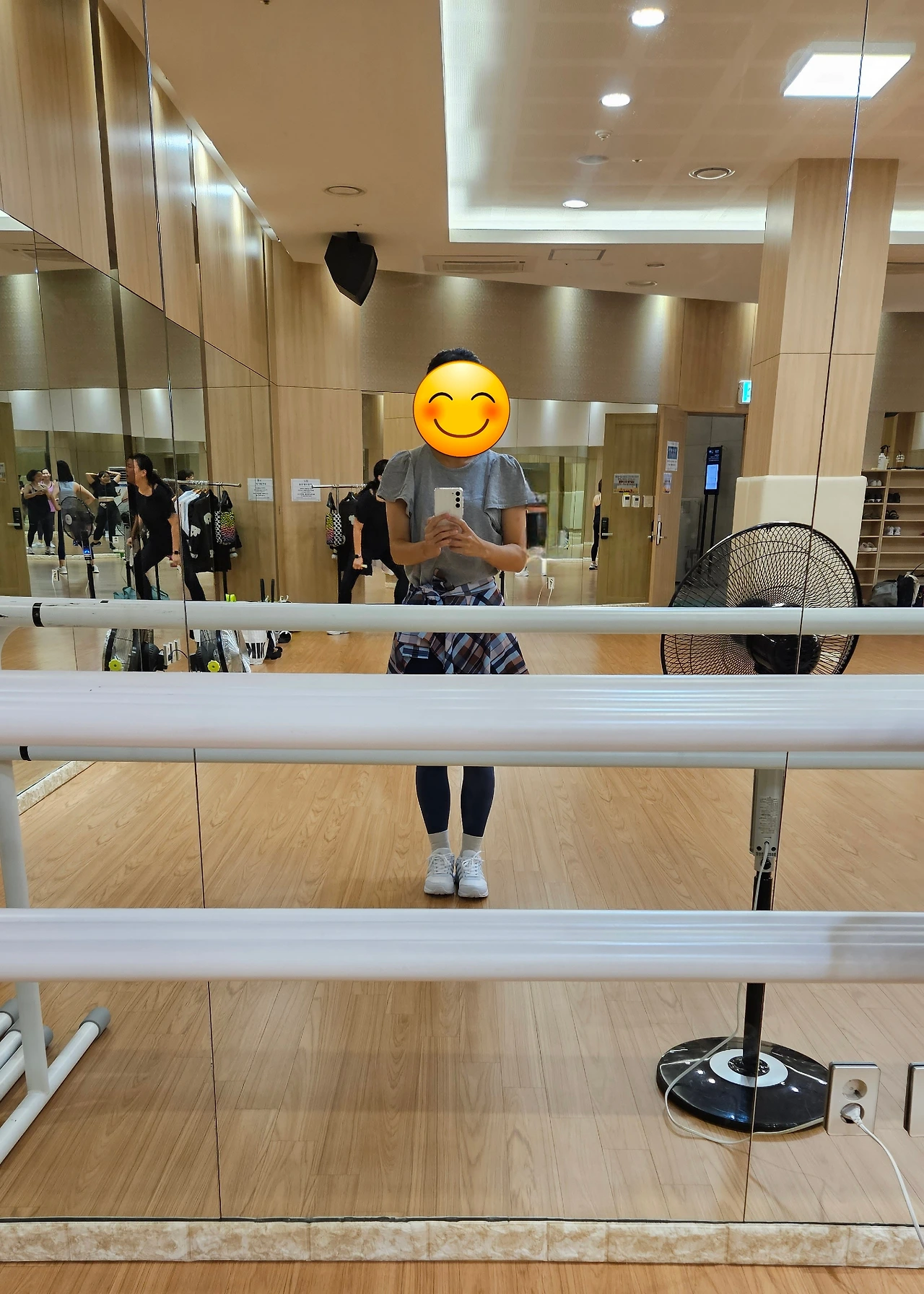 첫째 줄, 둘째 줄은 숙련된 조교들(=잘하는 기존 회원들)이 포진되어 있다. 셋째 줄, 넷째 줄은 조용히 잘하는 사람들의 자리이다. (그런 줄 몰랐지) 그 넷째 줄에 내가 얼결에 자리 잡은 것이다. 맨뒤에 있을 땐 강사님이 잘 보이지 않아 조교들을 보며 동작을 따라 했었다. 대부분의 사람들은 나를 못 보고 나는 사람들을 볼 수 있는 자리였다. 나를 포함한 신규 수강생들이 몇 명 있지만, 나는 그들 중에서도 으뜸으로 못하는데, 그런 내가 앞쪽에 자리 잡으니 뒷사람들은 나를 억지로라도 봐야 했다.