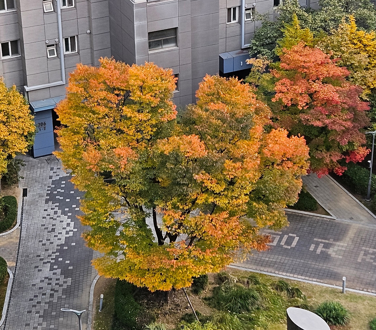 우리 집 앞에는 '가을한정 하트나무'가 있다. 가을에 단풍 든 이파리 모습을 우리 집에서 내려다보면 빨간 하트처럼 보여서 내가 붙인 별명이다. 재작년에 발견하고 사진을 제대로 찍지 못해 1년을 별러 작년에 사진을 남기려 했다가 또 시기를 놓쳤다.