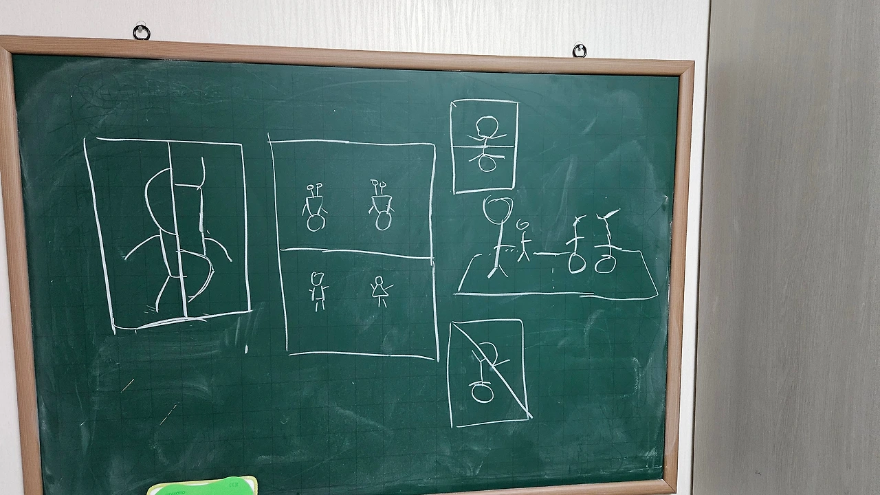 둘은 낄낄대며 반을 나눠 사람의 방향을 다르게 그릴 수 있는 모든 그림을 그리고자 했다.
