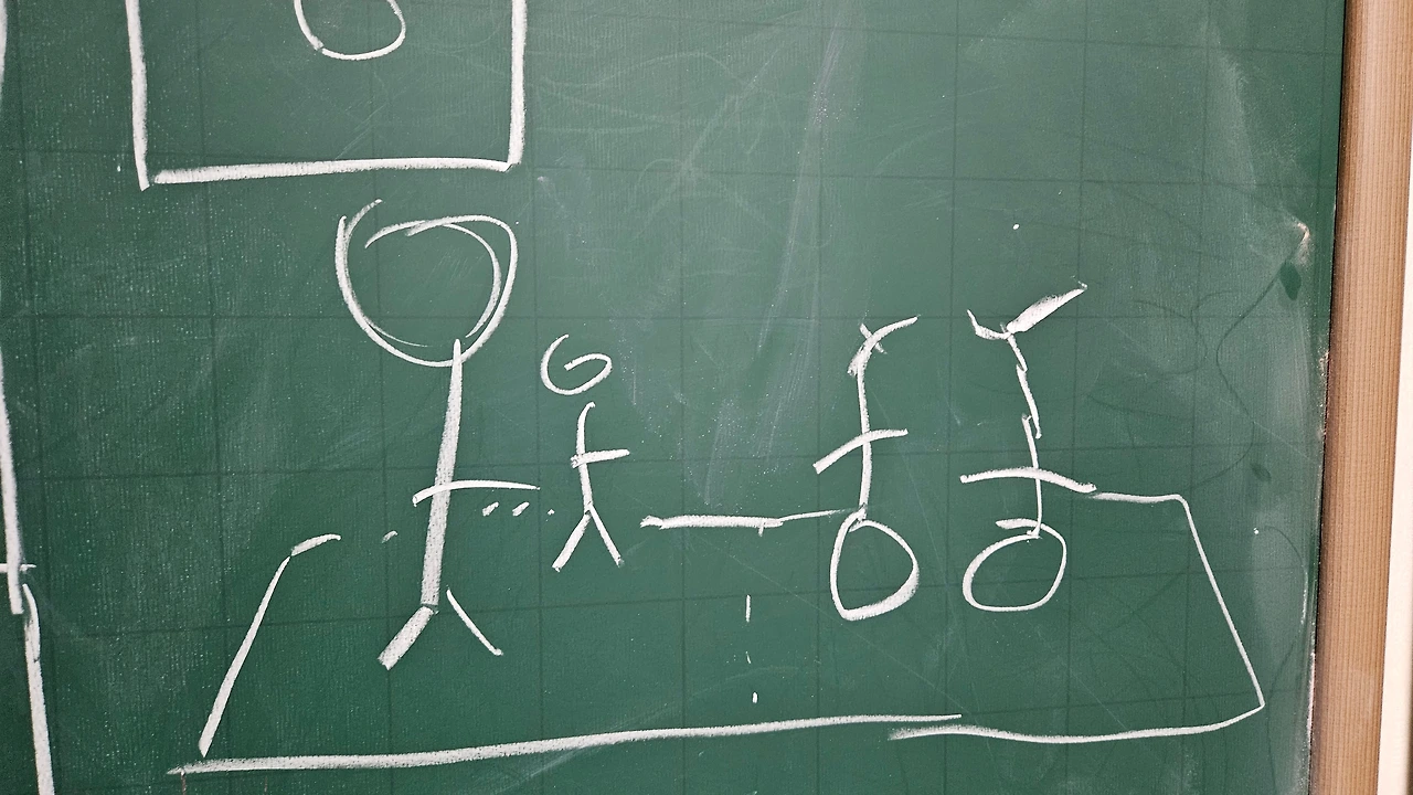 엄마 앞에 앉은 남자애가 축구하는 사람들을 그리는데, 종이를 반으로 나눠서 반은 사람 머리가 위로 가게 그리고, 그 종이를 돌려서 또 사람 머리가 위로 가게 그리니까 한 그림 안에서 방향이 다른 거야. 그게 너무 이상해서 왜 그렇게 그렸냐니까 걔가 오히려 엄마의 질문이 이상하다는 듯이 "같은 편, 다른 편이니까!"라고 대답했었다?