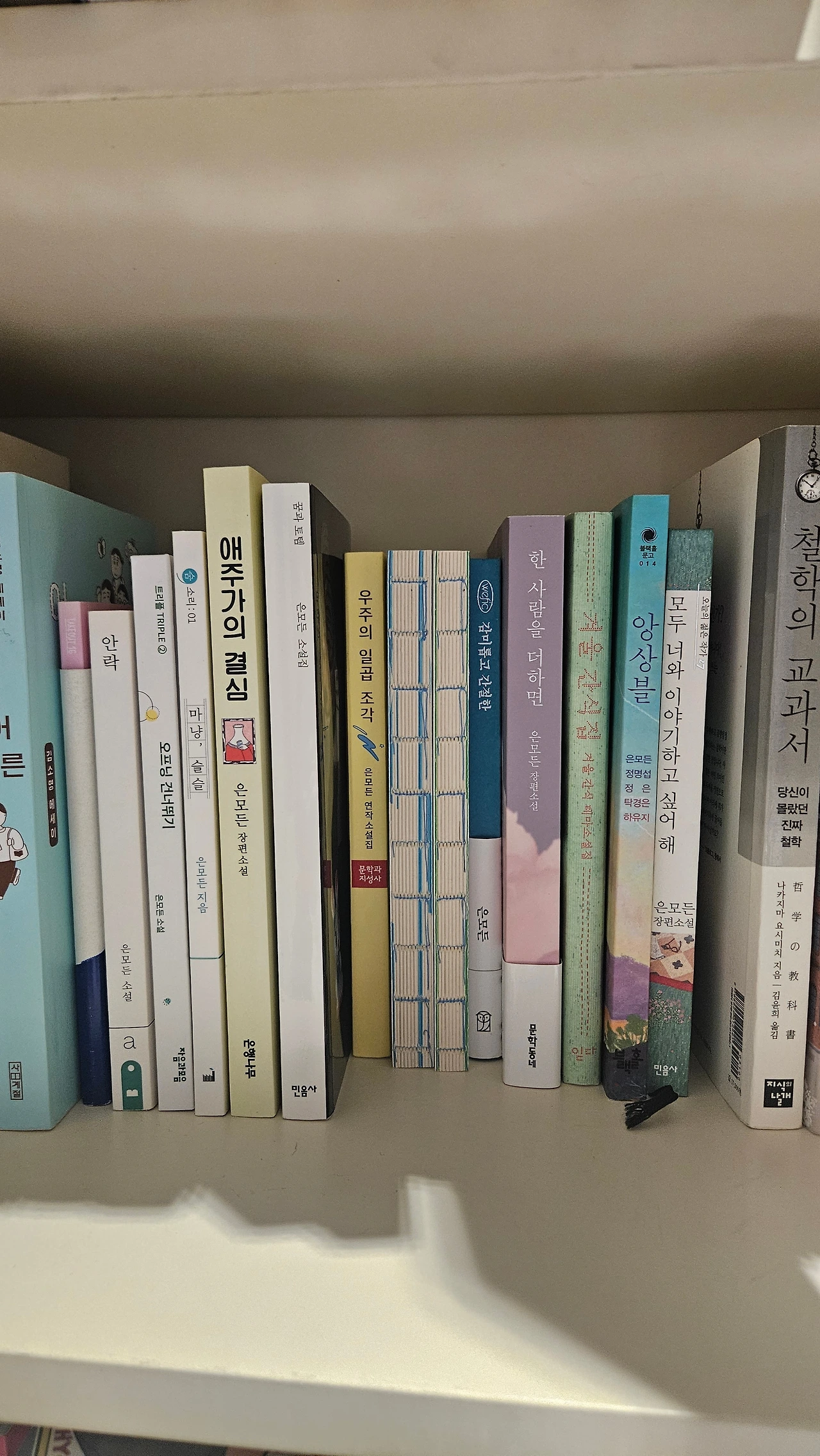 이쯤에서 친구의 이름을 공개하자면 '은모든' 작가다. 우리 집 책장 한 칸엔 은모든 컬렉션이 마련되어 있다. 내가 산 책도 있고 친구가 선물해 준 책도 있다. 전부 다 술술 읽히고 재미있는데 나는 <한 사람을 더하면>이 가장 재미있었다. 흥미진진하고 생각할 거리도 많다.