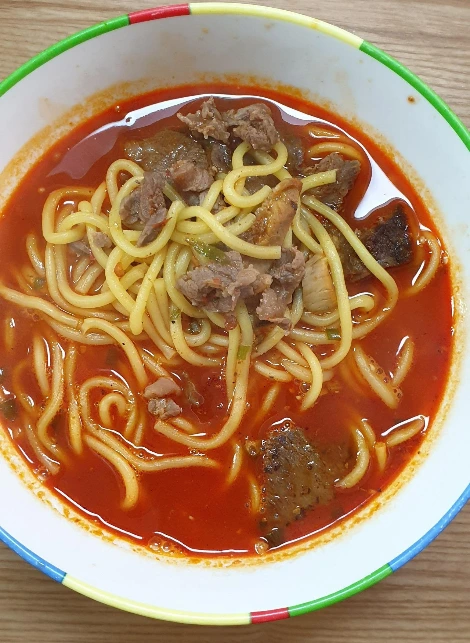 CJ 마라탕면은 맛납니다. 고기는 제가 넣었습니다.