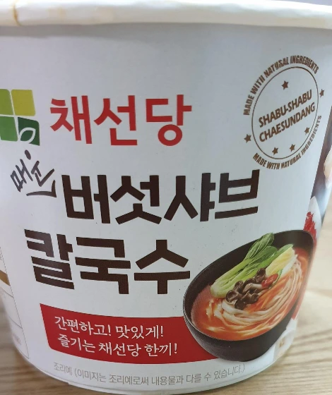 오후에 아이 학원을 데려다주면서 편의점에 갔다. 괜찮아 보이는 국수류를 두 개 집어왔다. 이거라면 간편하게 끼니를 때울 수 있겠다 싶었다. 저녁에 아이들에게 오리고기를 구워주고 나까지 먹으면 고기가 모자랄 것 같아서 나는 국수 하나를 선택했다. 채선당 버섯칼국수라니 매우 기대가 된다.