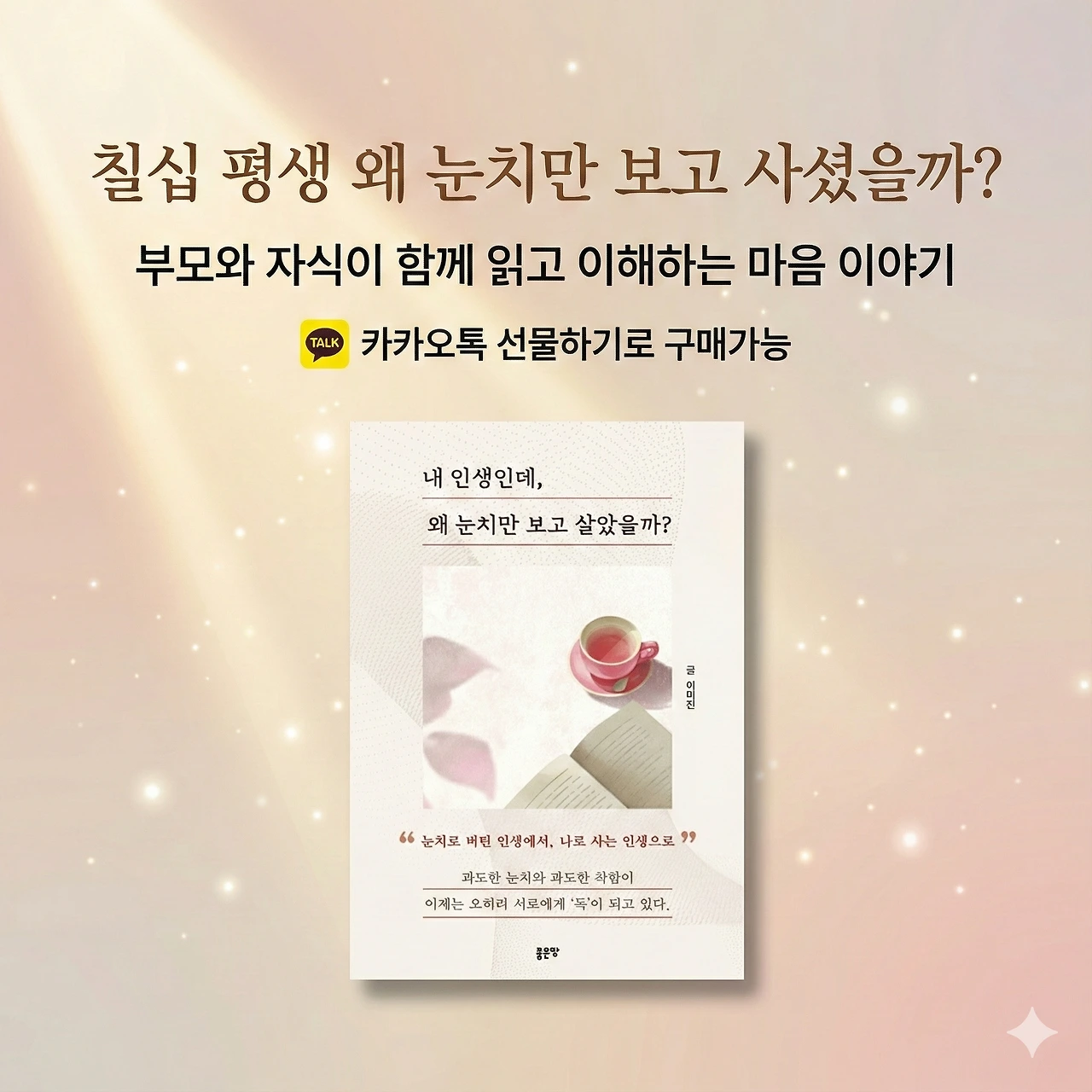 ✔️ 부모 세대 : [내 인생인데, 왜 눈치만 보고 살았을까?]- "눈치로 버틴 인생에서, 나로 사는 인생으로"