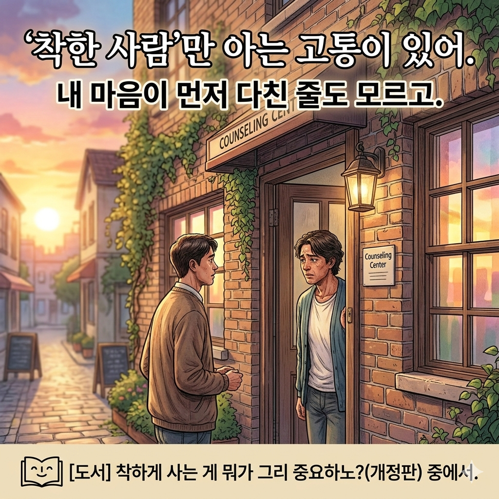 착한 사람은 타인을 위해 밤새 이야기를 들어주면서, 정작 자신이 힘들 때는 “이 정도로 힘들다고 말해도 되나”를 먼저 계산한다.