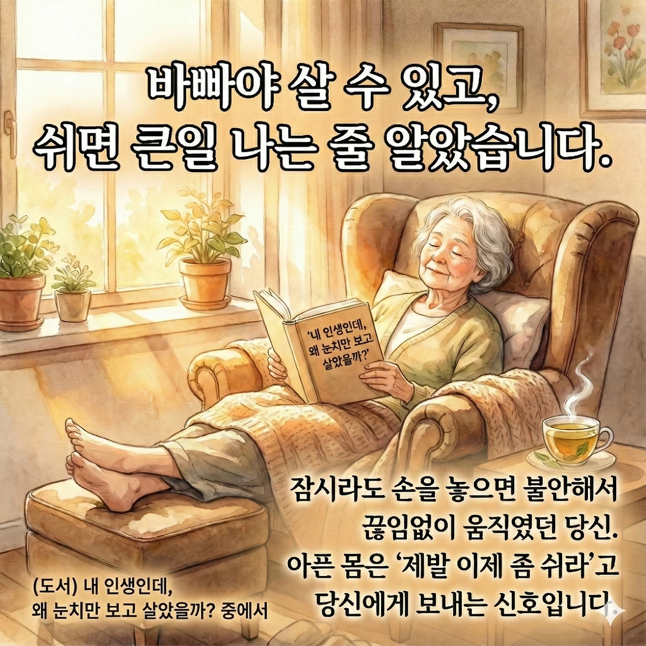 ✔️ 부모 세대 : [내 인생인데, 왜 눈치만 보고 살았을까?]- "눈치로 버틴 인생에서, 나로 사는 인생으로"