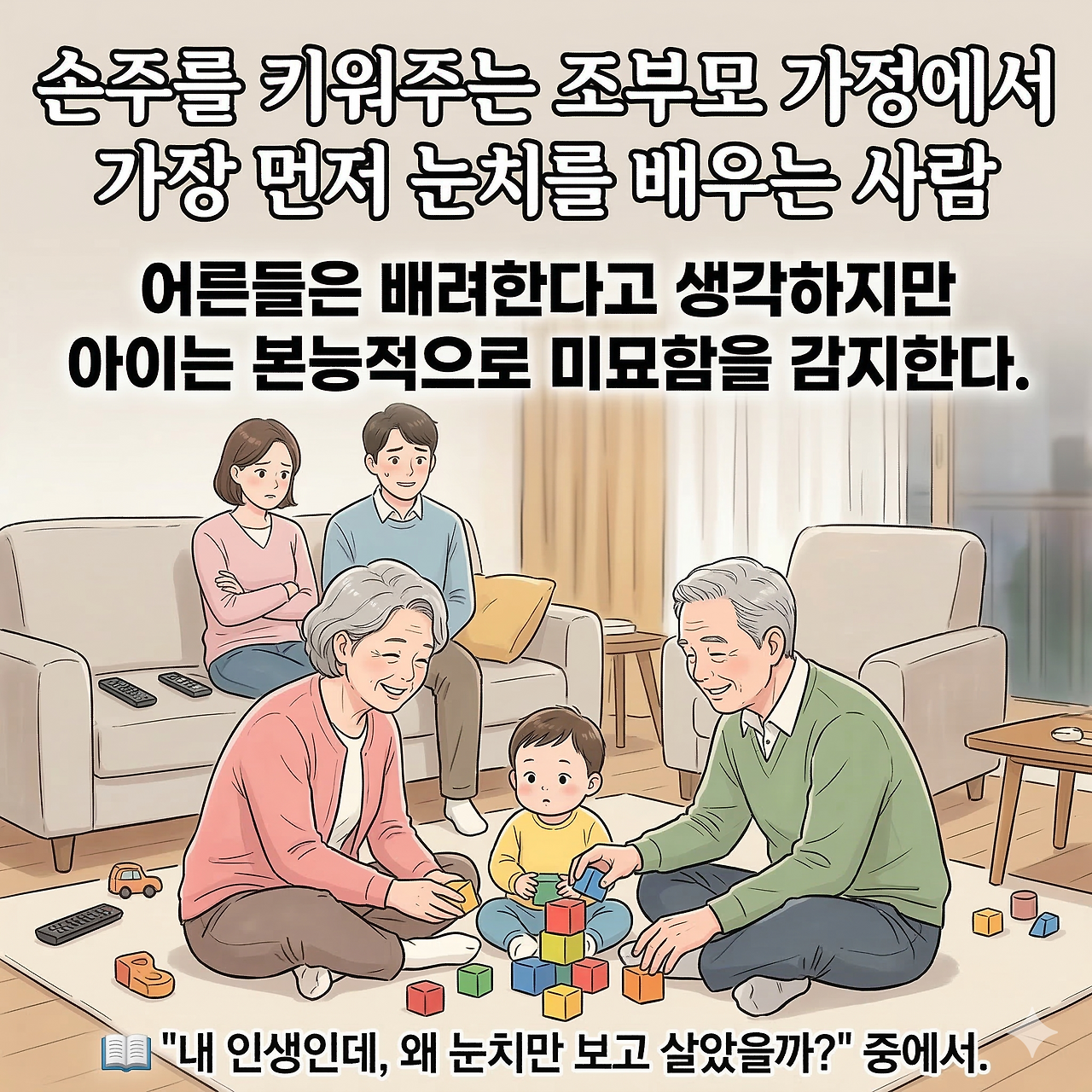 ✔️ 부모 세대 : [내 인생인데, 왜 눈치만 보고 살았을까?]- "눈치로 버틴 인생에서, 나로 사는 인생으로"