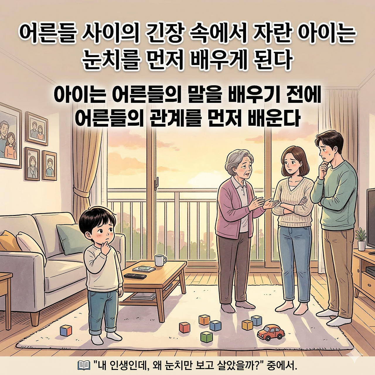 그렇게 아이는 점점 자신의 감정을 자유롭게 표현하기보다 주변의 분위기를 먼저 살피는 아이가 된다.