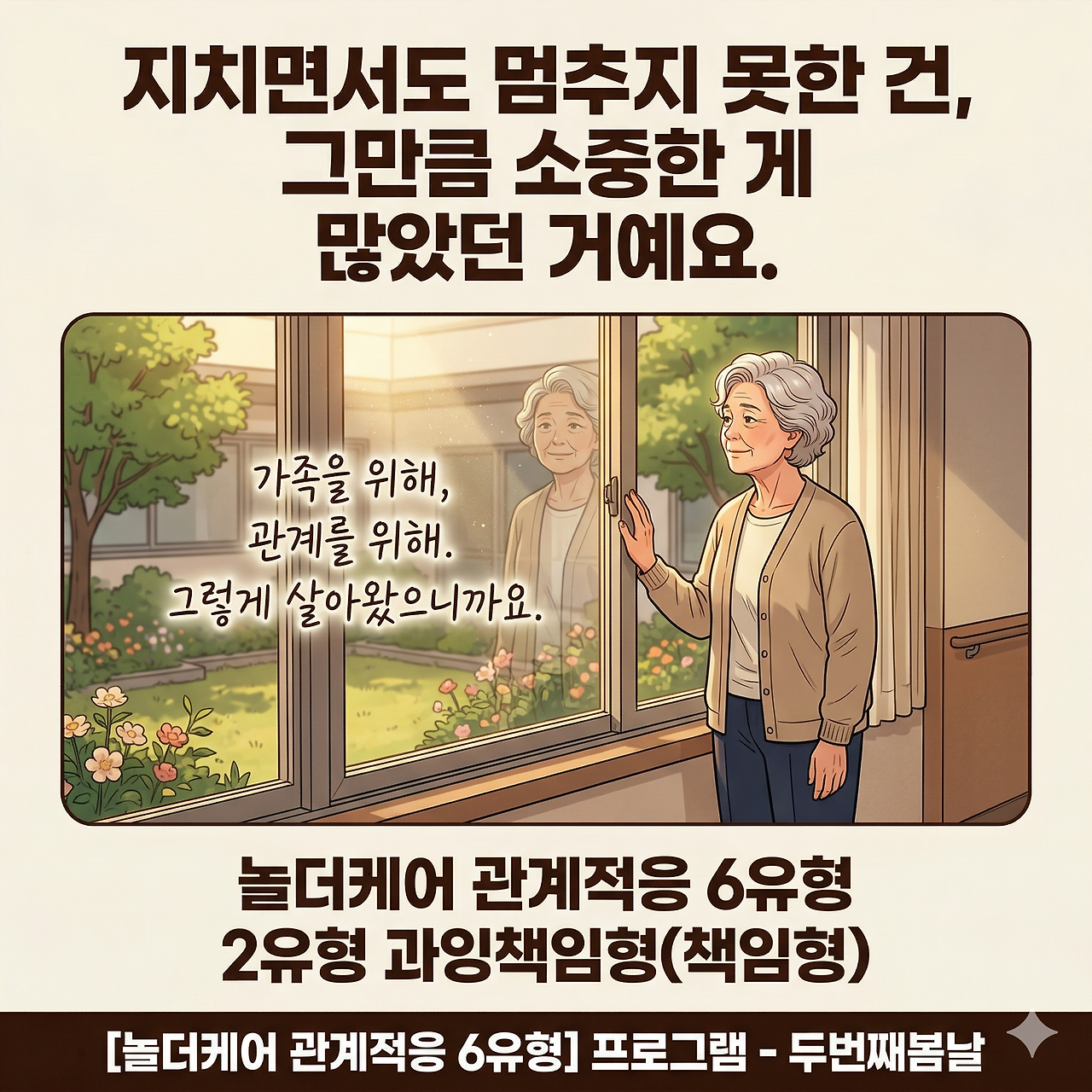 [놀더케어 관계적응 6유형]에서는, 이런 분을 2유형 - 과잉책임형(책임형) 이라고 부른다.