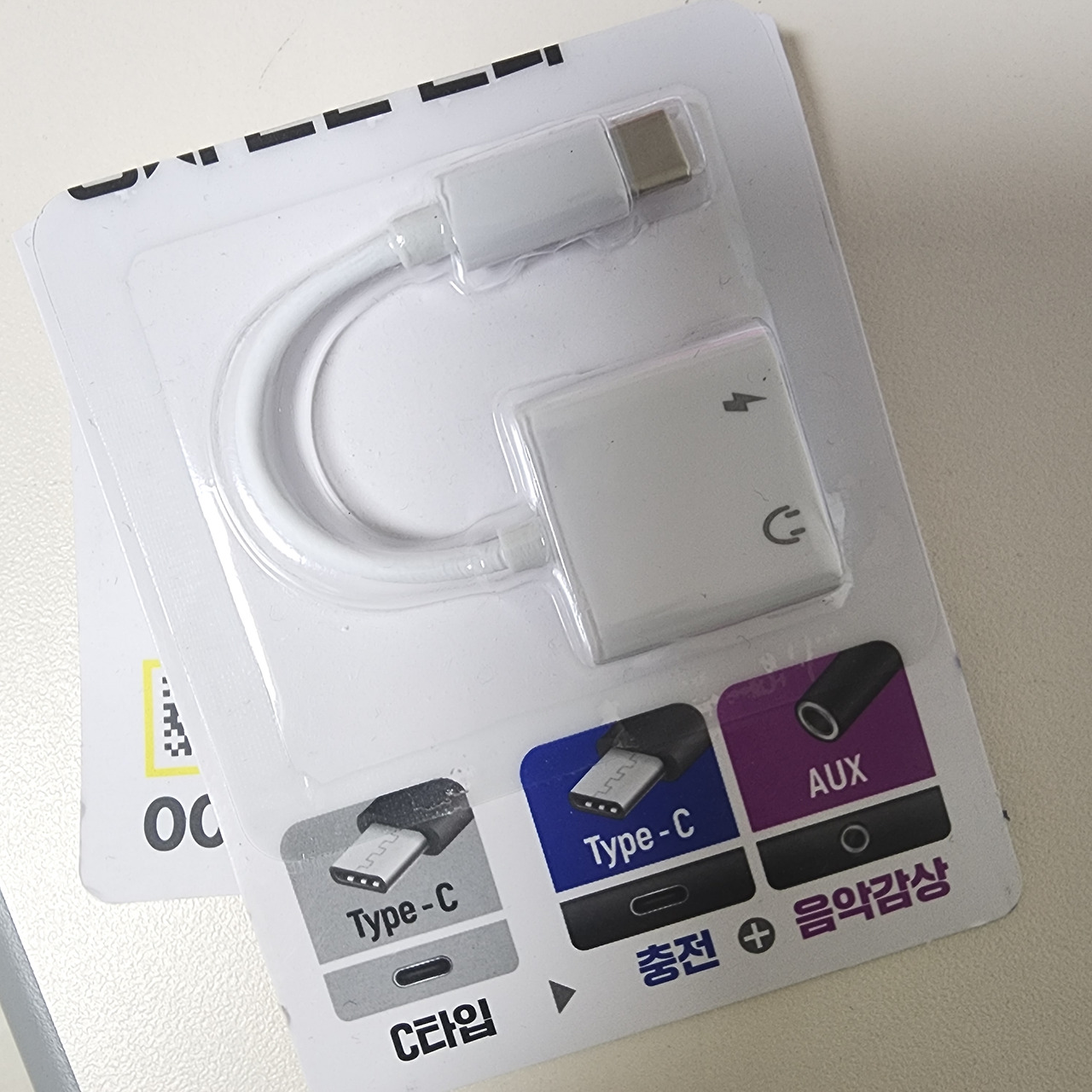 이걸 왜 샀냐고 물어보니 보조배터리라고 했다. 내가 사용하는 제품은 손바닥만 한 크기의 네모난 배터리에 연결선이 하나 달린 모양이었는데, 아이는 그 모양을 어렴풋이 기억했나 보다. 여기에 ‘충전’이라는 글자까지 쓰여 있으니 아이 입장에서는 충분히 그렇게 생각할 만했다. 위쪽에는 ‘동시 변환 젠더’라고 적혀 있었지만, 아이가 무슨 뜻인지 알 리 없었을 것이다.