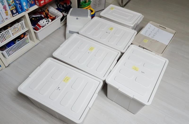 들고 갈 수 있는 가구를 추렸다. 큰 책장 두 개, 작은 책장 세 개가 남았다. 5단 책장 두 개 부피의 장난감과 책을 줄였다. 사정없이 버리고 팔았다. 남편 책들은 플라스틱 보관함에 담아 다음 이사까지 베란다 구석에 보관해 두기로 한다.