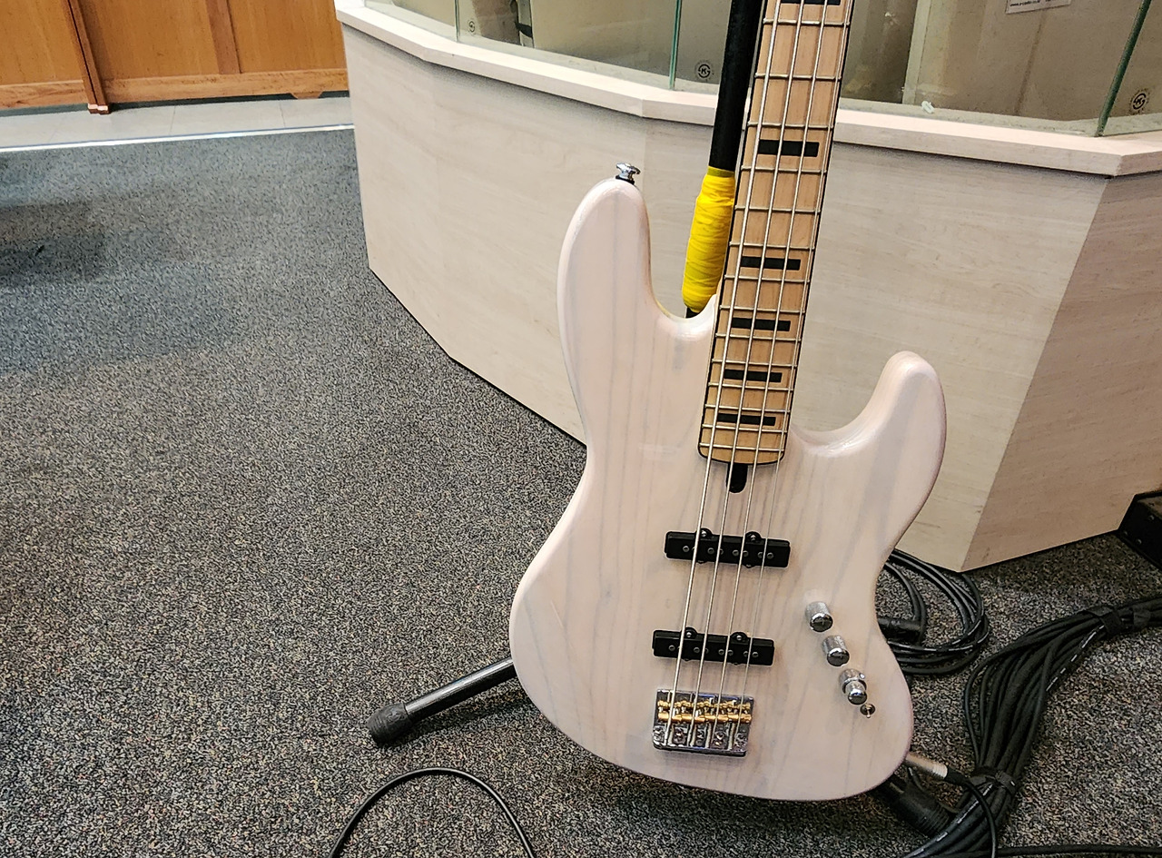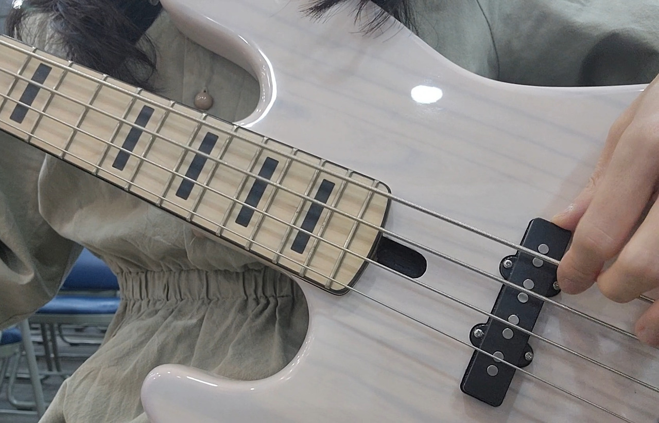 나는 예배 밴드팀에서 베이스 기타를 연주하고 있다.