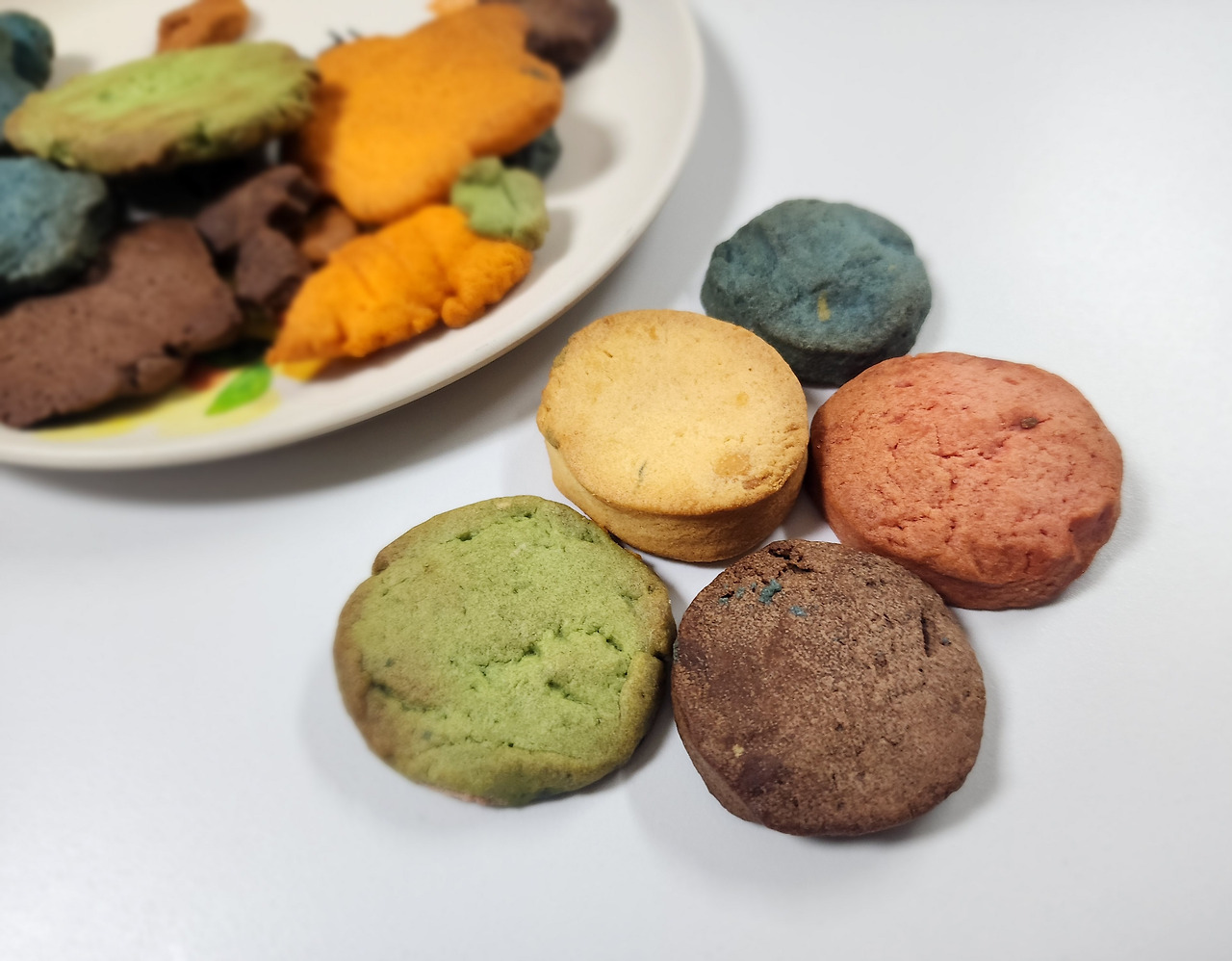 잠시 후 둘째 아이가 그릇을 뒤적이며 말했다. 아이 앞에는 빨강, 하양, 파랑, 검정, 초록색 동그란 쿠키들이 옹기종기 모여 있었다.