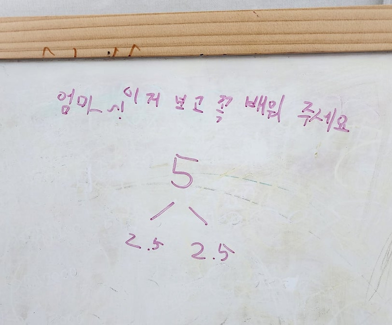 ‘엄마~! 이거 보고 꼭 배워 주세요. 5 = 2.5 + 2.5’