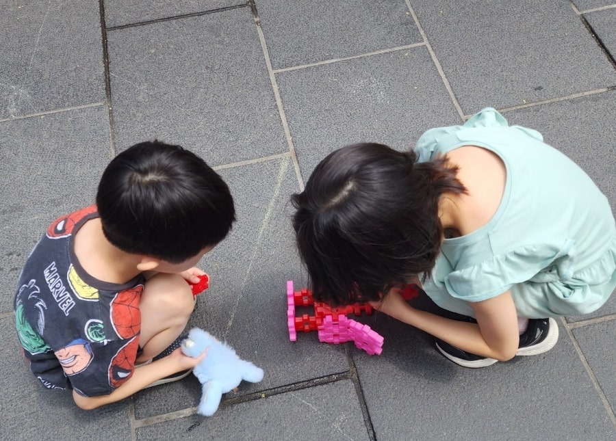 예상치 못한 친절에 순간 멈칫했지만, 감사한 마음으로 쓰레기를 건넸다. 아이는 나를 힐끗 바라보더니 조용히 블록을 두 손으로 감싸 쥐었다.