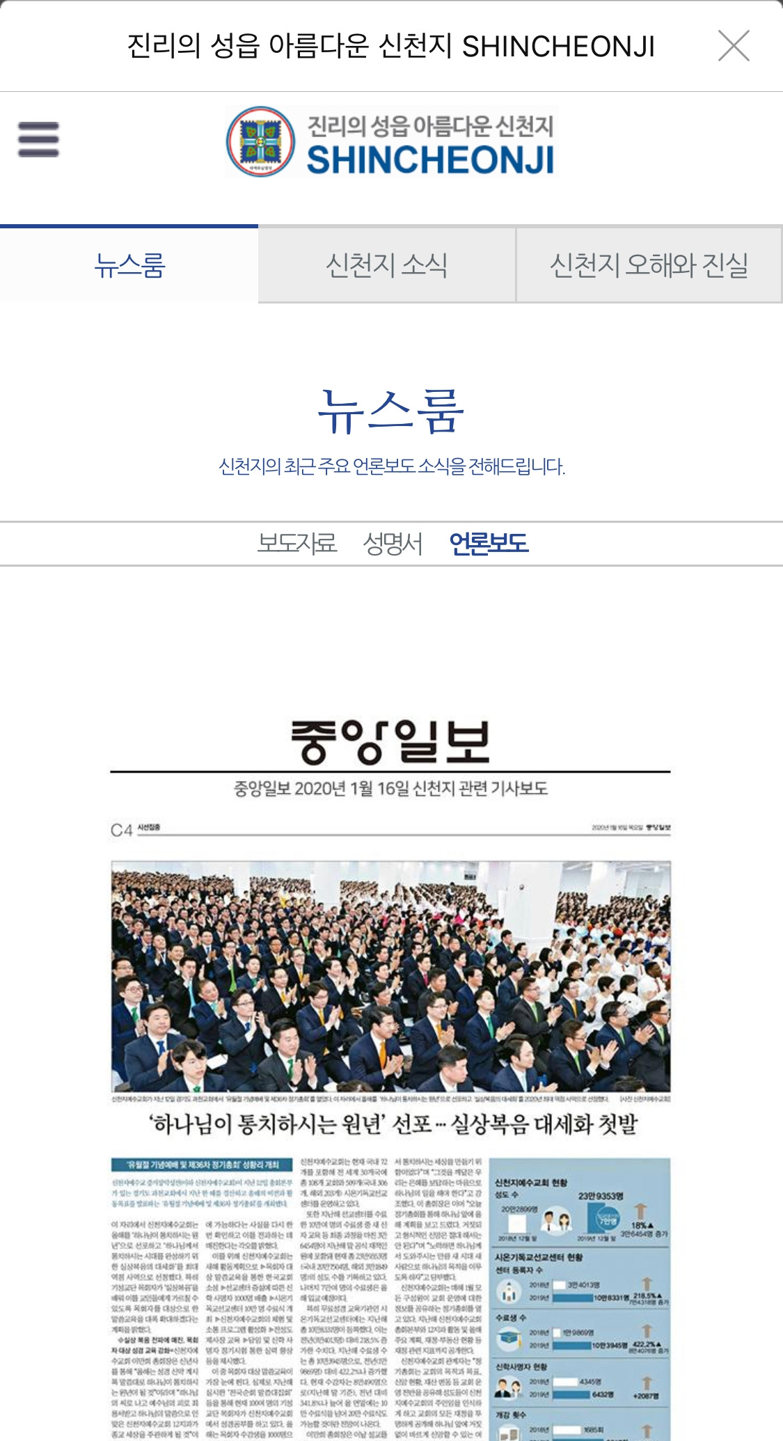 신천지 모바일 사이트 > 뉴스룸 > 언론보도로 들어가 보면