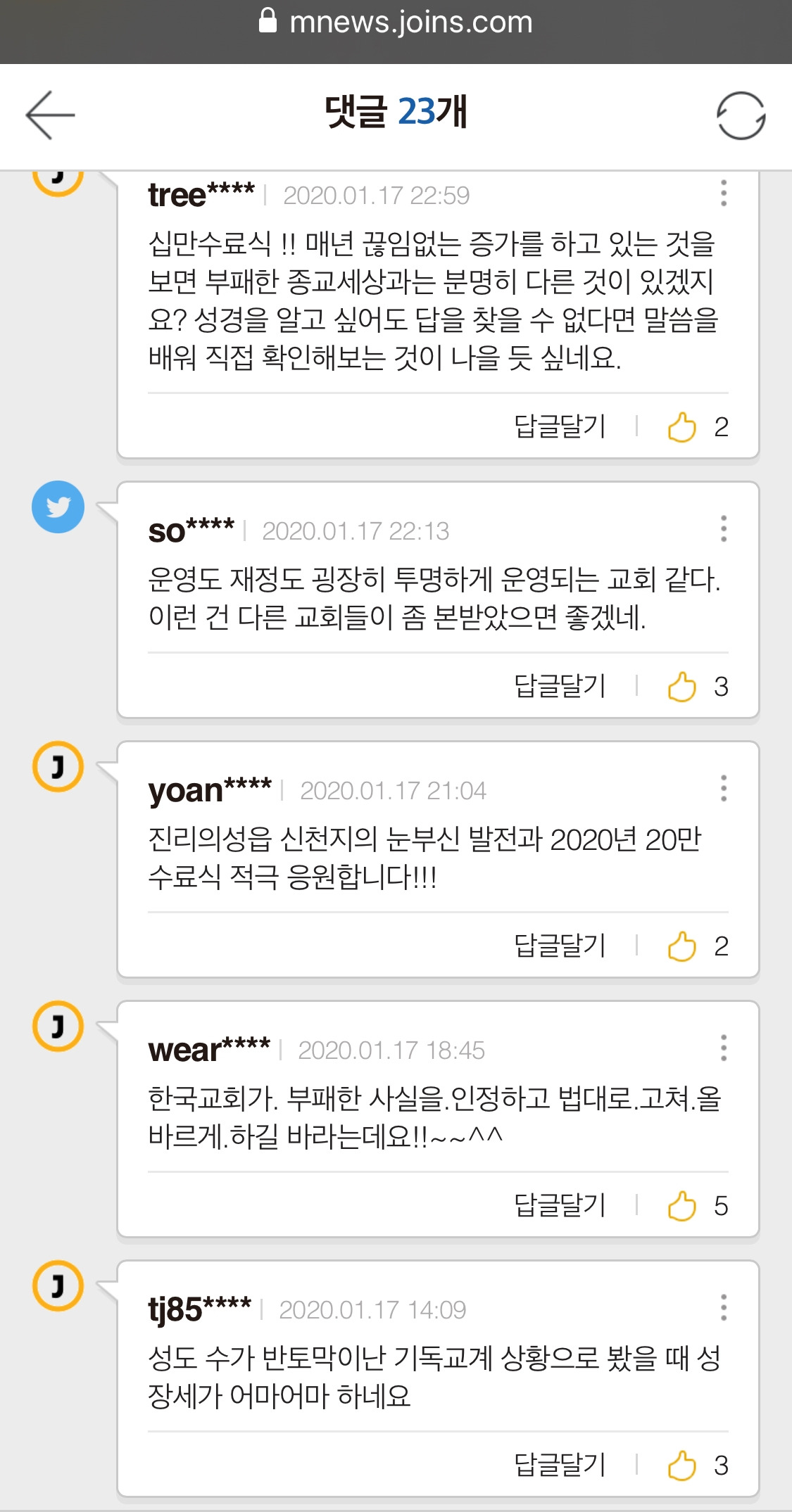 여기에 누가 봐도 조직적으로 달아놓은 듯한 신천지 측의 댓글이 덧붙여진다.