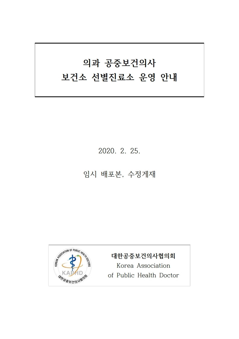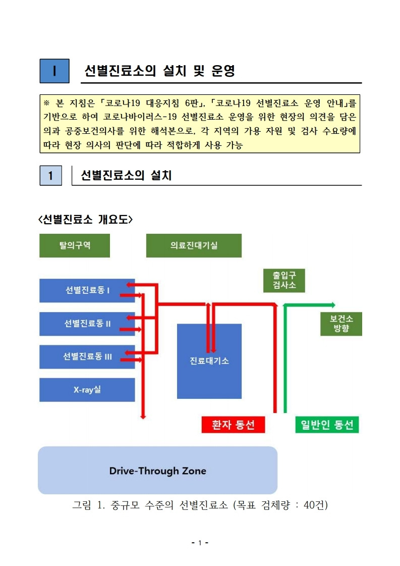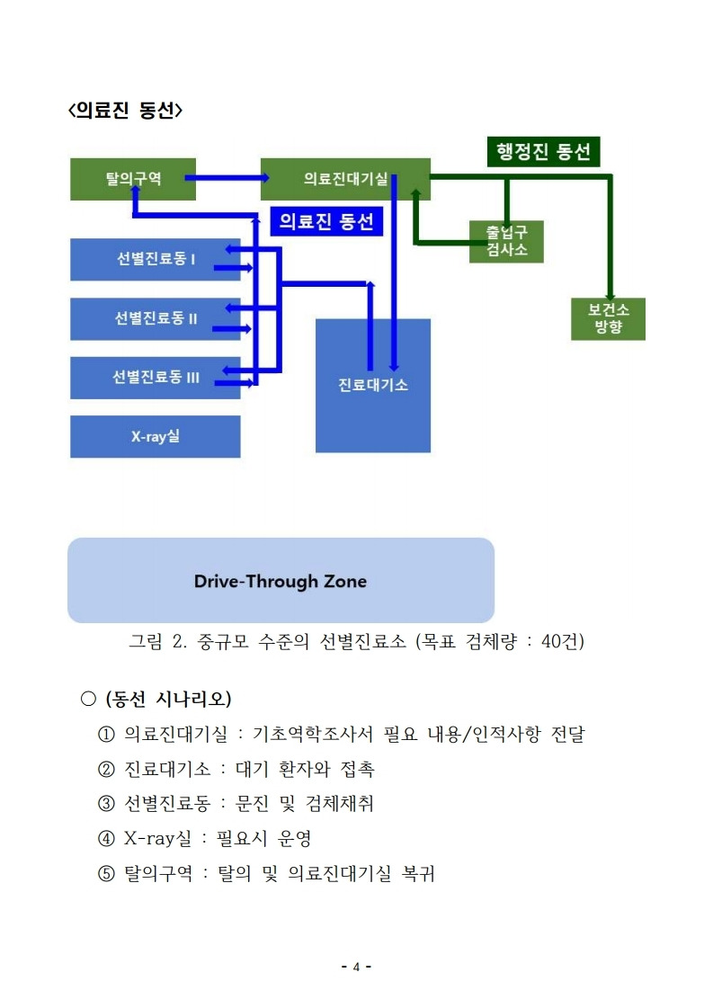 사례 3) 공중보건의사 선별진료소 운영안내 지침 (일부 페이지만 첨부)