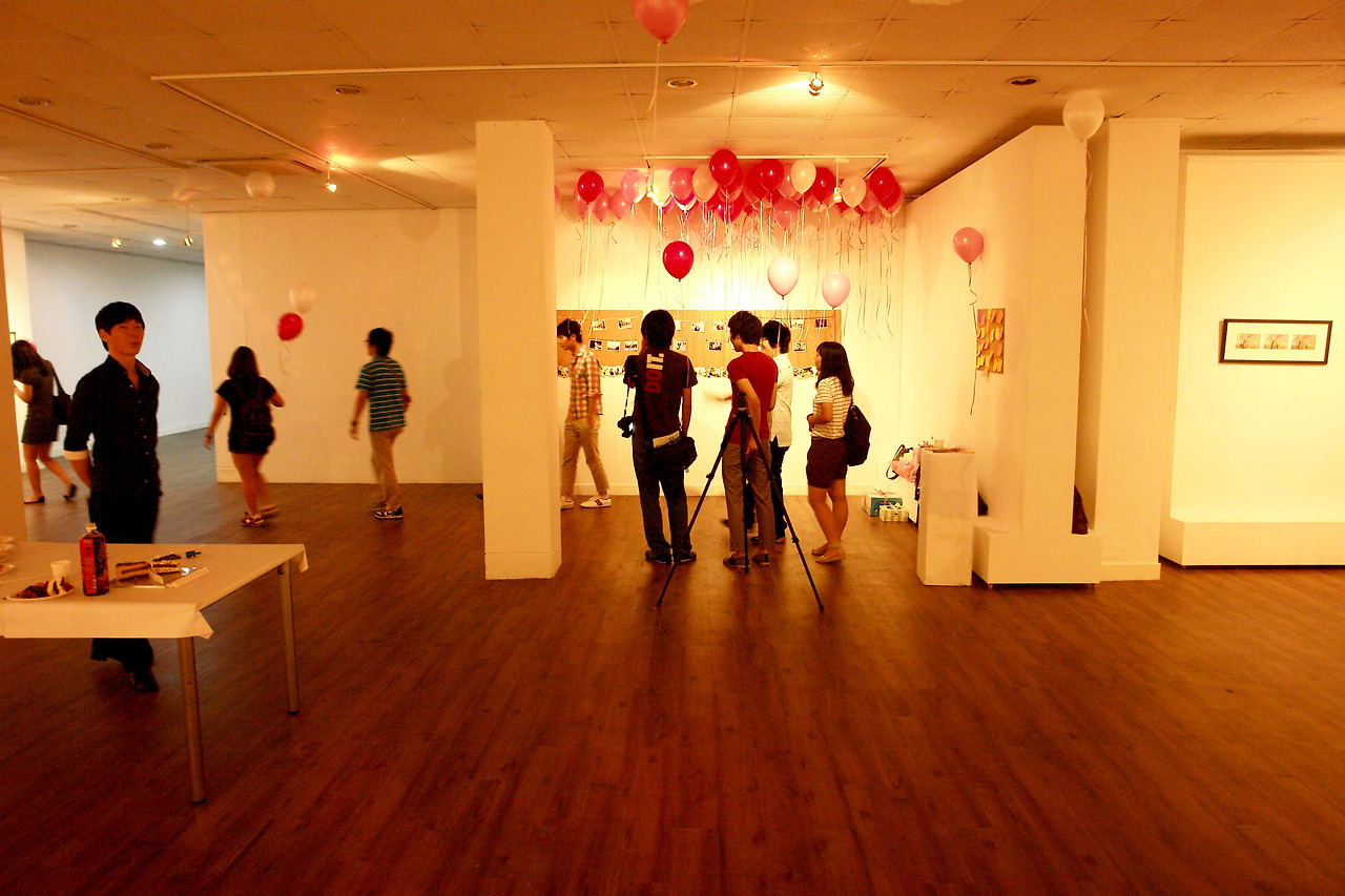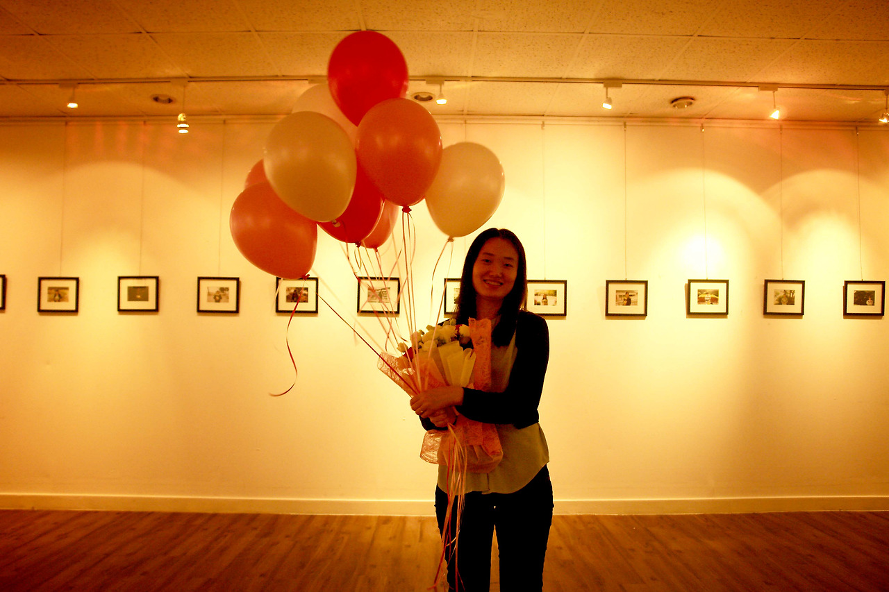당시 30여분 정도 와주신것 같은데, 찾아오는 지인들께 헬륨풍선 하나씩을 주고 전시장에서 기념사진을 촬영했다. 포토존에서 찍은 사진도 있고, 전시장 다른 곳에서 찍은 사진도 있다.