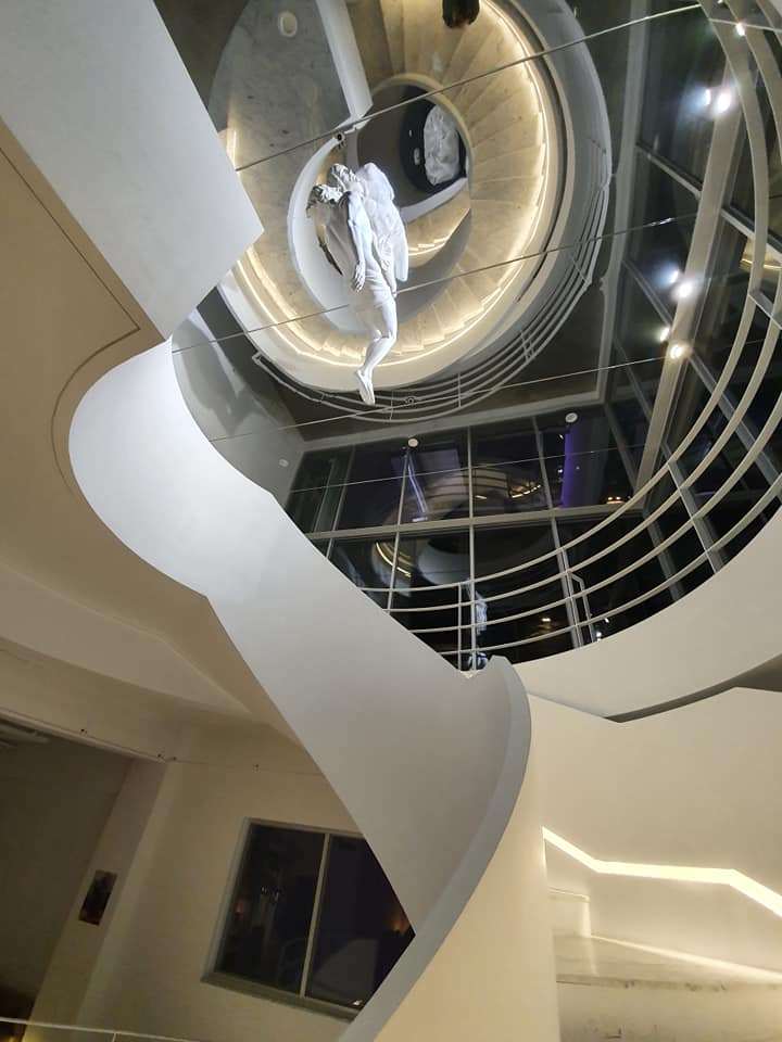 마리아의 등 뒤로 위를 향하는 계단을 오르려 시선을 들면 중정의 가장 높은 곳, 허공 중에 매달려있는 죽임 당한 예수의 몸을 발견한다. 그 작품을 제대로 보기 위해선 마리아를 감싸며 위로 향하는 계단을 천천히 걸어 올라가야 한다. 계단이 끝나고 허공에 매달린 예수상에 다다를 즈음이면 유리 천창으로 들어오는 빛과 함께 하늘이 나타난다. 문을 열고 나아간 루프탑에는 양림에서 무등까지 광활한 하늘과 산의 능선이 펼쳐진다.