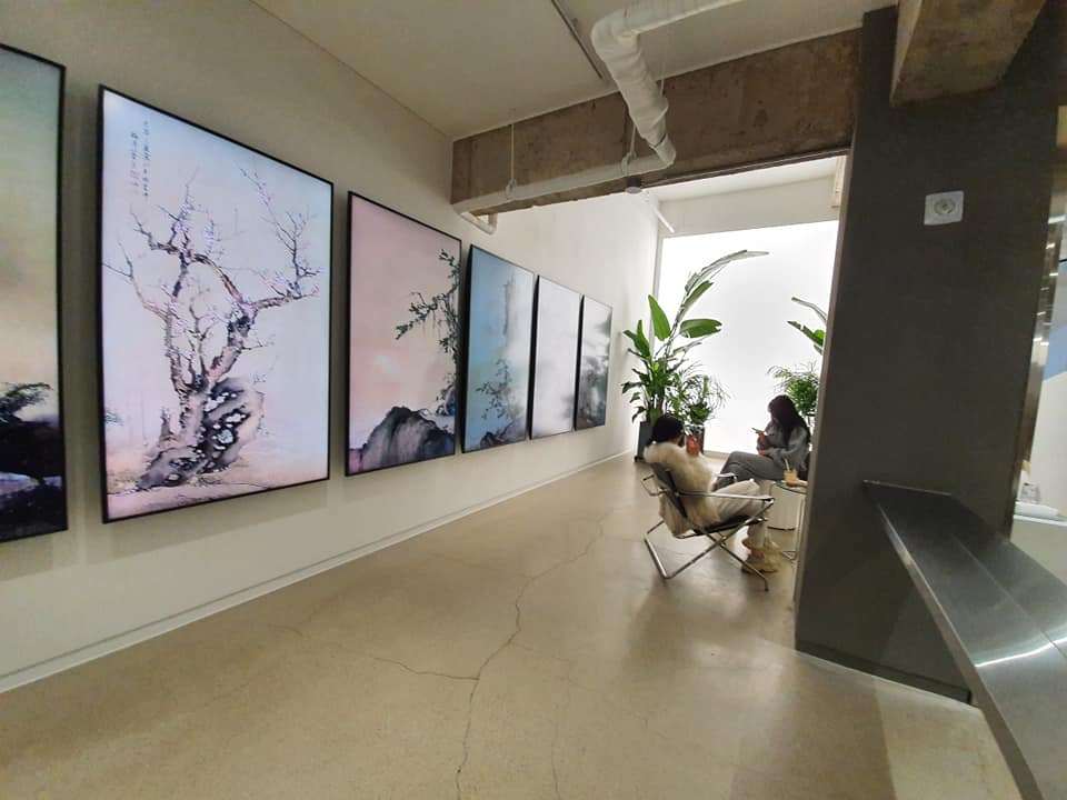 설치된 작품들은 스치듯 보면 회화지만 멈추어 서서 보면 움직임이 담긴 영상이다. 작품 안에 '스스로 존재하는 시간'은 그 앞에 자신의 시간을 내어놓고 멈추어 서는 이에게만 다른 시간의 문을 열어준다. 스튜디오 곳곳에는 원한다면 언제든 멈추어 서서 작품 속에 담긴 '빛과 시간'을 볼 수 있도록 의자가 놓여 있다. 심지어 사람들이 작품을 등진 채 앉아 있어도 작품을 해치지 않고, 함께 오브제가 되듯 서로를 감싸주는 배치와 동선이었다. 어쩌면 이이남 스튜디오가 불과 몇 개월 만에 수천 개의 인스타그램이 올라오는 힙플레이스가 된 것은 단지 '사진 찍기 좋은 곳'이었기 때문이 아니라 우리가 한 번도 경험해보지 못한 '예술의 환대'를 새롭게 경험하는 장소였기 때문 아니었을까?