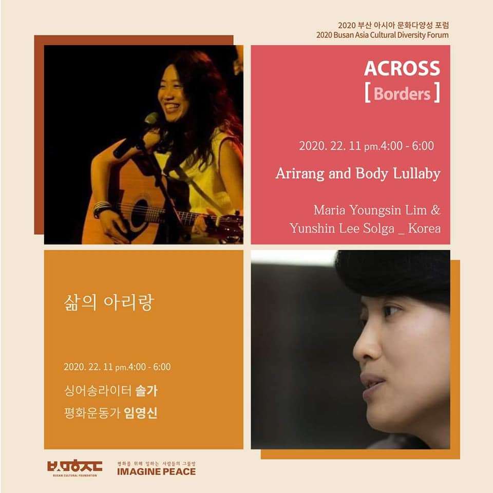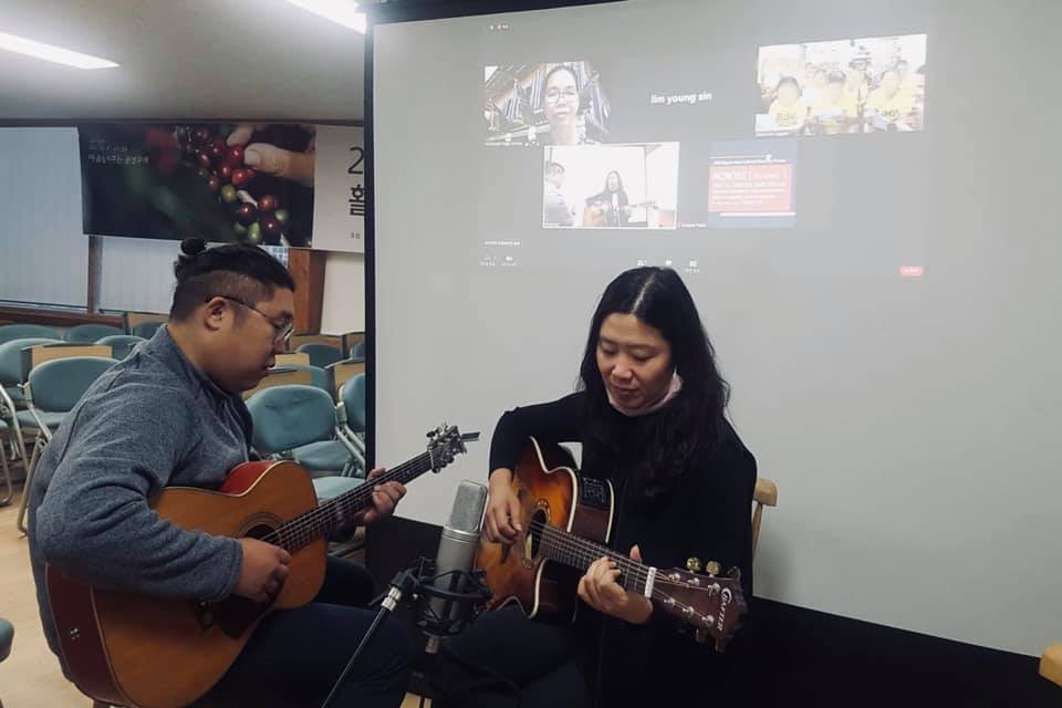 첫 시작은 솔가가 나누어 준 "삶의 아리랑" 워크숍이었다. 설레는 마음으로 첫 만남을 기다리던 저녁, 줌으로 감옥 문이 열리자. 노란 옷을 입은 수십 명의 여성들이 환한 얼굴로 헬로우를 외치기 시작했다. 세팅된 기타와 마이크 만으로도 흥이 많은 필리핀 여성들은 텐션이 한껏 고조되었다. 마이크 테스트와 인사를 마치자 워크숍에 앞서 솔가의 노래를 먼저 듣고 싶다는 요청에 아리랑을 부르기 시작했다. 몇몇 분들은 이미 들어 본 듯 리듬과 허밍으로 반응하기도 했다. 전통 아리랑을 먼저 부르고, 연이어 솔가는 자신만의 아리랑을 천천히 부르기 시작했다.